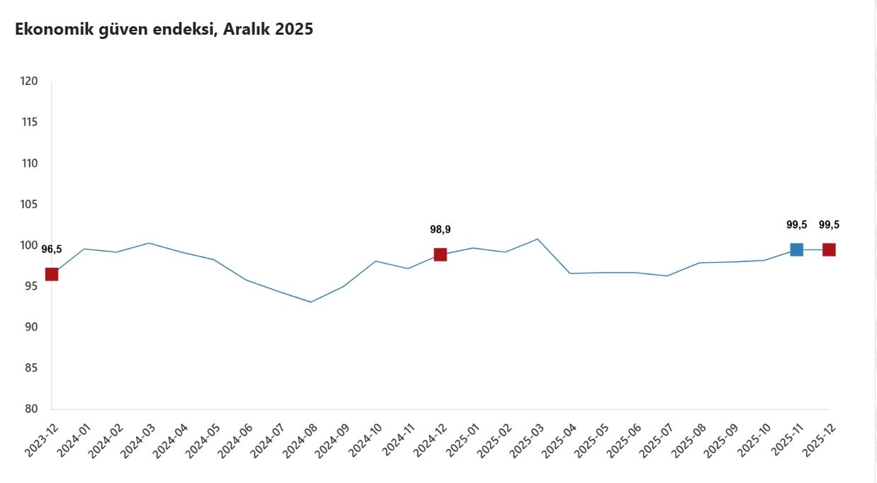 TÜİK: Ekonomik güven endeksi aralık ayında 99,5 değerini aldı