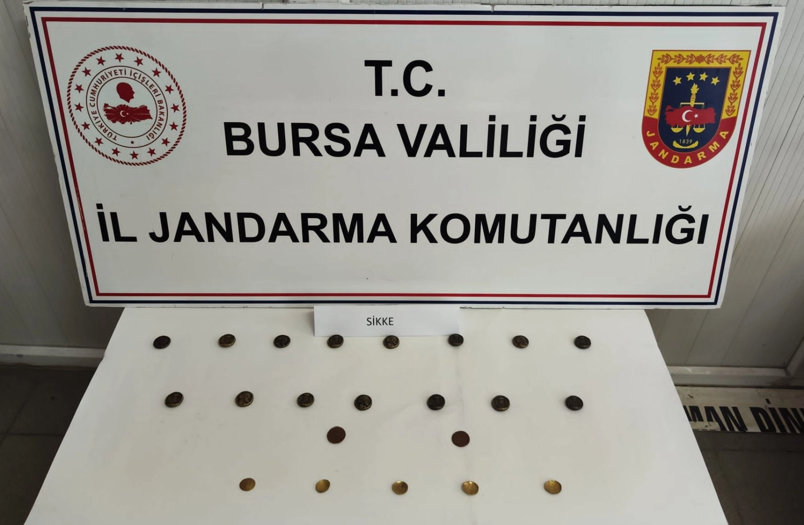 Yavuz YILMAZ/İNEGÖL (Bursa), (DHA)- BURSA’nın İnegöl ilçesinde jandarmanın düzenlediği operasyonda İstanbul’dan getirilen Bizans ve Roma dönemlerine ait 17 bronz ve 5 altın sikke ele geçirildi. Tarihi eserleri 100 bin dolara satmayı planlayan C.Ç. gözaltına alındı.Bursa İl Jandarma Komutanlığı İstihbarat Şube Müdürlüğü ve İlçe Jandarma Komutanlığı ekipleri, İstanbul’dan getirilen tarihi eserlerin İnegöl ilçesinde satılacağı ihbarı üzerine harekete geçti. Teknik ve fiziki takip başlatan ekipler, C.Ç. isimli tarihi eser kaçakçısını ilçe merkezinde yakalayıp, gözaltına aldı. Şüphelinin üzerinde yapılan aramada, Bizans ve Roma dönemlerine ait 17 bronz ve 5 altın sikke ele geçirildi. Tarihi eserleri 100 bin dolara satmayı planladığı öğrenilen şüphelinin jandarmadaki işlemleri sürüyor. (DHA)