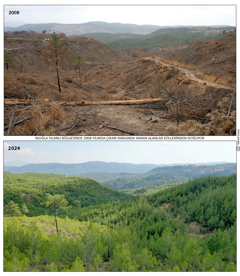 16 yıl önce yanan 200 hektar alanda dikilen fidanlar ağaç oldu