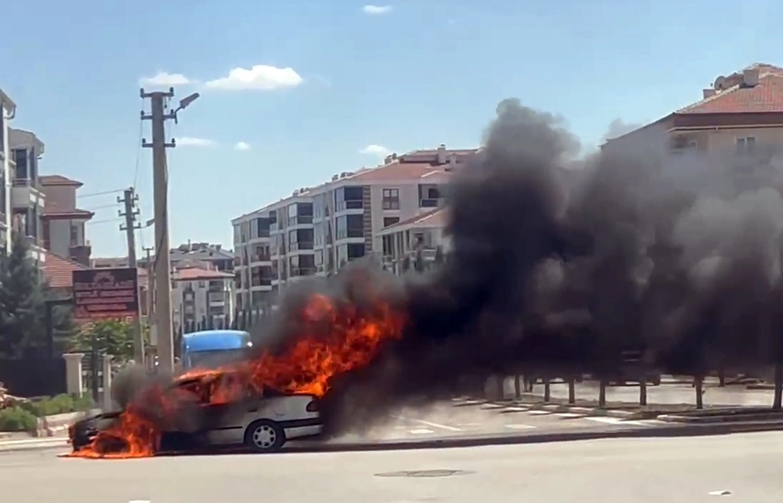 Aksaray’da seyir halindeyken alev alan otomobil yandı