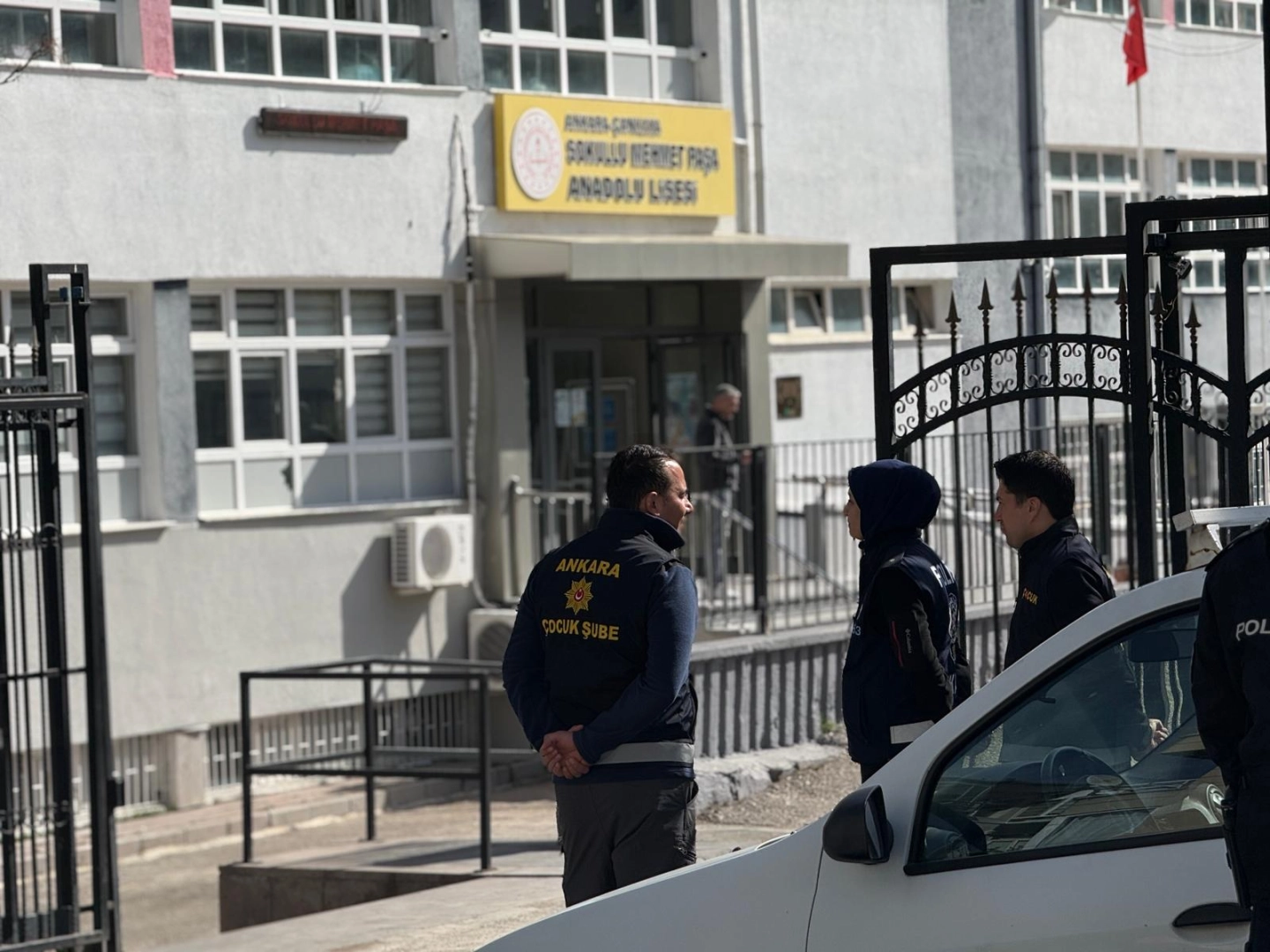 Ankara Emniyet Müdürlüğü Asayiş ve Çocuk Şube ekipleri, Şanlıurfa ve Kahramanmaraş'ta meydana gelen okul saldırılarına ilişkin yürütülen çalışmalar kapsamında; okullardaki güvenlik önlemlerini artırdı. Özellikle okul giriş ve çıkış saatlerinde yapılan uygulamalarda, çevredeki şüpheli durumlara anında müdahale ediliyor. Denetimler kapsamında okul önlerinde bekleyen şüpheli kişiler, trafik yoğunluğu ve servis araçları da kontrol ediliyor. (DHA)