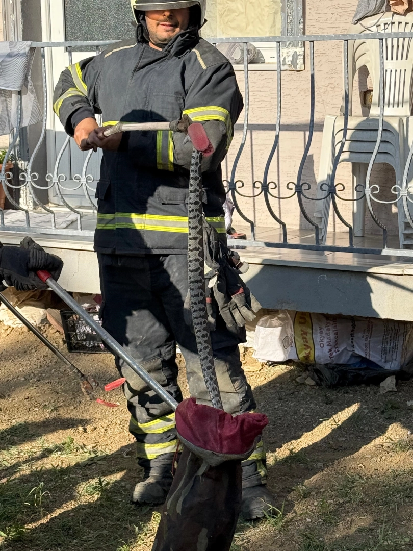 Yavuz YILMAZ/İNEGÖL (Bursa), (DHA)- BURSA'nın İnegöl ilçesinde bir apartmanın bahçesine giren Kafkas burunlu engerek yılanı itfaiye ekipleri tarafından yakalandı.İnegöl ilçesi Kemalpaşa Mahallesi Şehit Er Yılmaz Güneş Sokak’taki bir apartmanın bahçesinde yılan gören çevredekiler, durumu itfaiye ekiplerine bildirdi. İhbar üzerine adrese ekipler sevk edildi. Ekipler, yılanın, nesli tehdit altında olan Kafkas burunlu engerek yılanı olduğunu belirledi. Ekipler yakaladığı zehirli yılanı özel çuvala koydu. Yılanın doğaya salınacağı öğrenildi. (DHA)