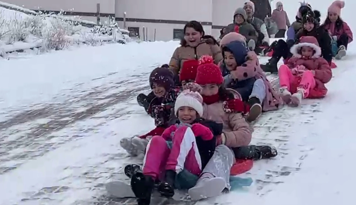 Kentte günlerdir devam eden kar yağışı kenti beyaza bürüdü. Yusufeli ilçesinin yeni yerleşim alanlarından olan dördüncü bölgede evlerinin önündeki yokuşta kayan çocuklar, yılbaşı tatilini kar eğlencesine çevirdi. Soğuk havaya rağmen poşet, kızak ve tahtalarla kayarak karın keyfini çıkaran çocuklara aileleri de eşlik etti. Çocuklar yılın ilk karını değerlendirirken ortaya renkli görüntüler çıktı.