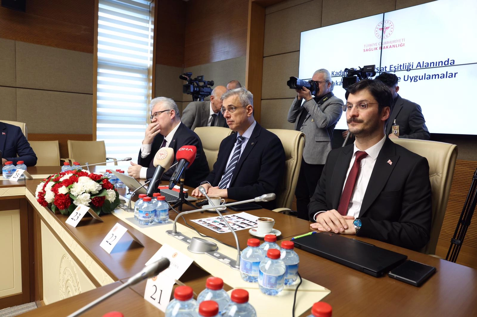 Ardından Sağlık Bakanı Kemal Memişoğlu, komisyona sunum yaptı. Bakan Memişoğlu, 12'nci Kalkınma Planı'nda, Bakanlığın kadın-erkek fırsat eşitliği kapsamındaki sorumluluk ve iş birliği alanlarının açıkça belirlendiğini ifade ederek, "Bu kapsamda; evlilik öncesi ve yeni doğan taramalarının yaygınlaştırılması, çocuk, kadın ve üreme sağlığı hizmetlerinin güçlendirilmesi, anne ve bebek kayıplarının azaltılması, fırsat eşitliği eğitimlerinin verilmesi ve kadın personel istihdamının artırılması öncelikli çalışma alanlarımızdandır. Ayrıca 2024-2028 Stratejik Planımızda eşitliği güçlendirmeye yönelik hedef, gösterge ve izleme mekanizmaları oluşturduk. Belirlediğimiz hedefleri, performans göstergeleri üzerinden düzenli olarak izliyor ve değerlendiriyoruz. Saygıdeğer komisyon üyeleri, plan ve programlarımız doğrultusunda kadınlarımızın sağlığında önceliği koruyucu hizmetlerle birlikte tarama, izlem ve eğitim programlarına verdik. 2025 yılı verilerimiz, bu alandaki kararlılığımızı açıkça ortaya koymaktadır. 2025 yılında ülke genelinde yaklaşık 2 milyon 200 bin kadınımıza ücretsiz meme kanseri taraması yaptık. 1 milyon 800 bin vatandaşımıza ise rahim ağzı kanseri taraması gerçekleştirdik. Sayın Emine Erdoğan Hanımefendinin himayelerinde başlatılan ‘Normal Doğum Eylem Planı’yla, tıbben gerekli olmayan sezaryen oranlarında ülkemiz tarihinde ilk kez yüzde 12,3’lük bir düşüş sağladık. ‘Her gebeye ebe’ modeliyle, 2025’in son 6 ayında 415 binin üzerinde gebemize birebir danışmanlık hizmeti sunduk. ‘Misafir Anne’ uygulamasıyla 7 bin 717 gebemizi güvenli ortamlarda ağırlayarak risklerin önüne geçtik" açıklamasında bulundu.