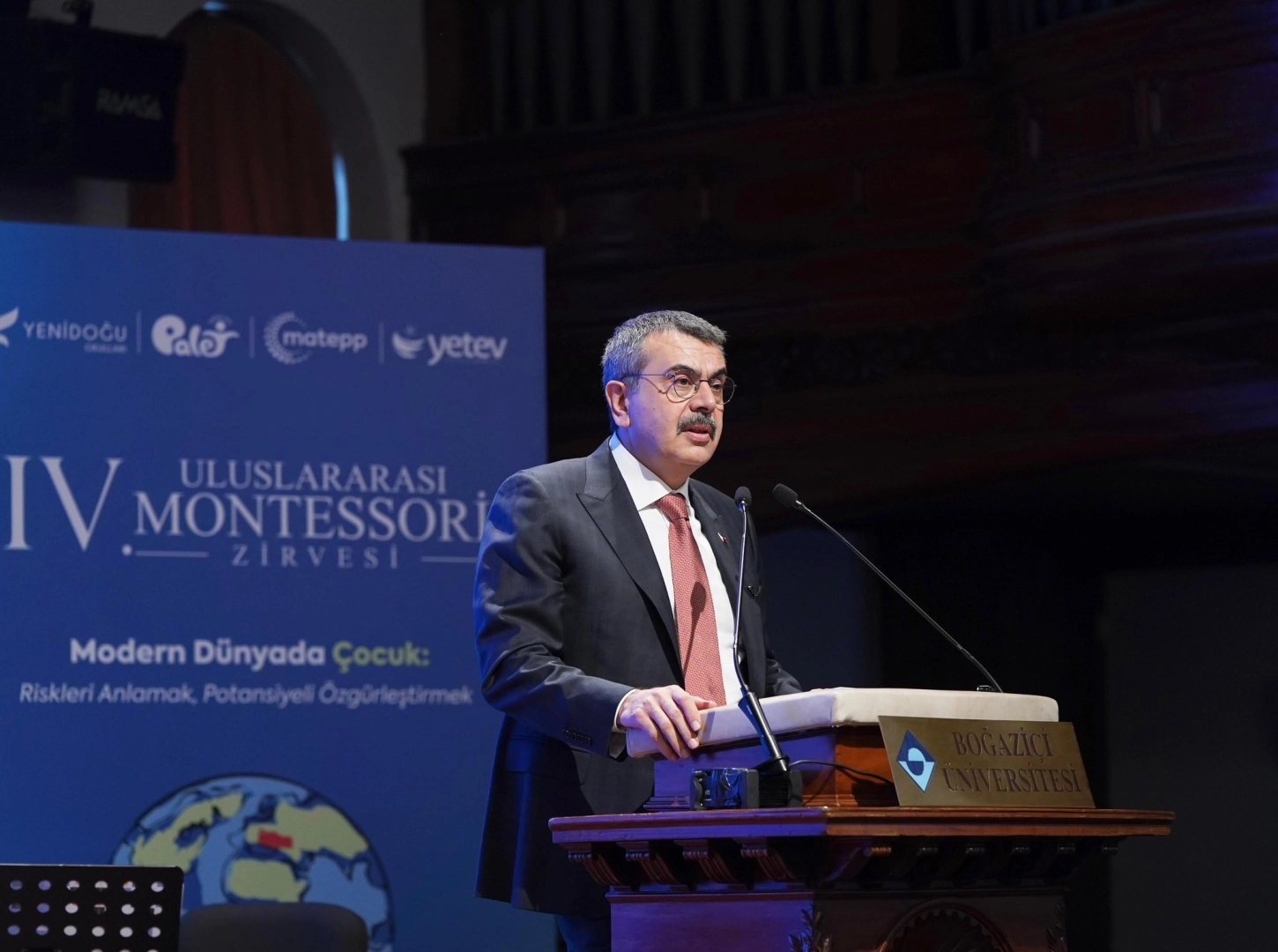 Bakan Tekin, "Her çocuğun kabiliyetini kendi seyrinde büyüten, kendi fıtratında büyüten bir eğitim anlayışına ihtiyaç var. Bakanlık olarak bizler bilhassa son dönemde üzerinde ısrarla durduğumuz istikamet de tam da bu ihtiyaca cevap vermek üzere kurgulanmış bir istikamettir. Aslında yapmaya çalıştığımız şeylerle biraz önce Bilal Bey'in anlattığı Montessori tecrübesi arasında güçlü bir bağ olduğu açıktır. Türkiye Yüzyılı Maarif Modeli'mizle güç kazandırdığımız maarif yönelişi aynı zamanda bu büyük hakikatlere de işaret ediyor. Çocuklarımızın fıtratını gözeten bir eğitim anlayışı. Bu yıl için 'Her çocuk bir fidan, ilk ders Yeşil Vatan' temasıyla başladığımız çalışmalarımızı ikinci yarıyılın başında bayrak sevgisiyle derinleştirdik. Ramazan ayıyla beraber 'Maarifin kalbinde Ramazan' mottosuyla, ardından Nisan ayında ise 'Maarifin kalbinde çocuk' mottosuyla etkinliklerimizle evlatlarımızın merhametle, paylaşmayla, hürmetle ve birlikte yaşama ahlakıyla daha güçlü bir biçimde buluşmasını sağlamaya çalıştık. Farklı temalarda gerçekleştirdiğimiz aile buluşmalarıyla anne, baba ile çocuk arasındaki bağı kuvvetlendiren, daha sağlam bir destek alanı oluşturmaya çalıştık. Dijital bağımlılık, teknoloji bağımlılığı, sigara ve tütün bağımlılığı ile akran zorbalığı gibi başlıklarda öğretmenlerimize ve öğrencilerimize yönelik yüz yüze ve çevrim içi eğitimleri yaygınlaştırmaya çaba sarf ettik. Rehberlik modellerimizde çocuklarımızın da empati, öfke kontrolü, çatışma çözme, akran baskısıyla baş etme ve dijital güvenlik alanlarında desteklenmesine ağırlık verdik. Bu milletin çocukları bizim gözümüzde emanetin en kıymetli halkasıdır" dedi.