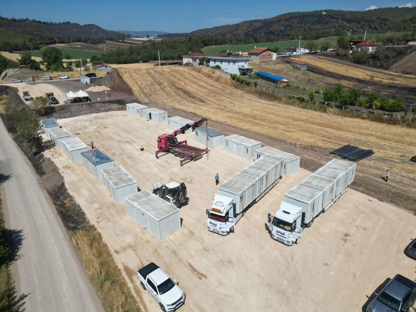 BİLECİK, (DHA)- BİLECİK Valiliği, Gölpazarı ve Osmaneli ilçelerinde meydana gelen orman yangınlarında evsiz kalanlar için konteyner evler kurmaya başladı. Bilecik Valisi Faik Oktay Sözer, “Geçici değil, güvenli bir barınma sağlıyoruz. Hiçbir vatandaşımızı açıkta bırakmadık, bırakmayacağız” dedi.Sakarya’da geçen hafta cuma günü çıkan, Bilecik’in Gölpazarı ve Osmaneli ilçelerine de sıçrayan orman yangınları güçlükle kontrol altına alınarak 3 günde söndürüldü. Orman yangınları nedeniyle valilik kararıyla 14 yerleşim yeri tahliye edilirken, Yangından en çok zarar gören Gölpazarı ilçesine bağlı Köprücek ve Tongurlar ile Osmaneli ilçesine bağlı Soğucakpınar köyleri, İçişleri Bakanlığı’nın onayıyla ‘Genel Hayata Etkili Afet Bölgesi’ ilan edildi.Bilecik Valiliği, orman yangınlarından etkilenenlerin konaklayabilmesi amacıyla konteyner evlerin yapımına başladı. Bilecik Valisi Faik Oktay Sözer, konteyner kurulacak alanlarda yapılan hazırlıkları yerinde incelerken, kısa sürede konteynerlerin tamamlanacağını söyledi. Vali Sözer, “Geçici değil, güvenli bir barınma sağlıyoruz. Hiçbir vatandaşımızı açıkta bırakmadık, bırakmayacağız. Bu süreci devlet-millet dayanışmasıyla en güçlü şekilde atlatacağız. Bu topraklarda yeşeriş nasıl birlikte olduysa, küllerinden doğuş da birlikte olacak. Devletin tüm kurumları sahada ve vatandaşların yanında yer alıyor” dedi. (DHA)