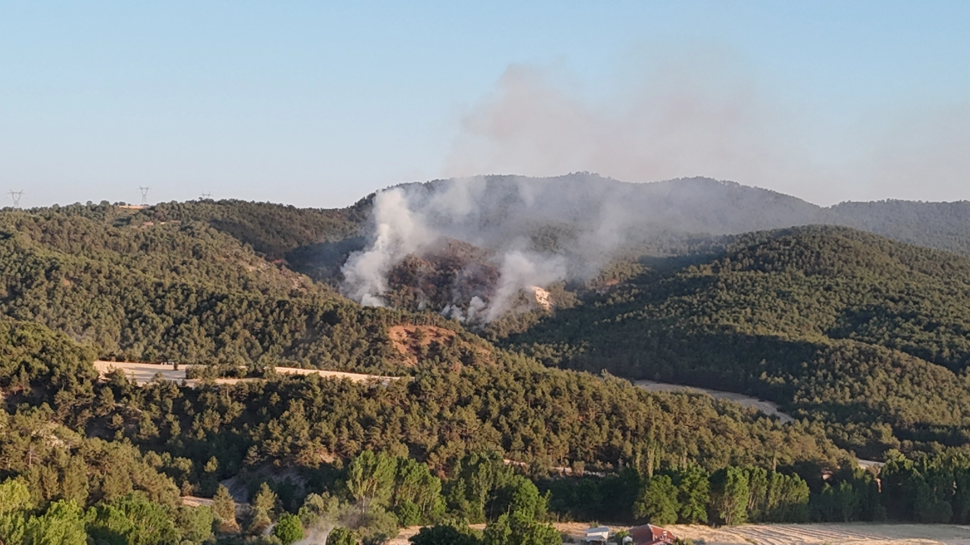 YANGINA HAVADAN VE KARADAN MÜDAHALE SÜRÜYORBolu'nun Göynük ilçesinde çıkan orman yangınına havadan ve karadan müdahale sürerken, yangın dronla görüntülendi. Bolu Valiliği'nin yangınla ilgili yaptığı açıklamada şu ifadeler yer aldı:"Bugün saat 16.41 sularında Göynük ilçesi, Karaardıç köyü, Merkez Mahallesi civarında bulunan ormanlık alanda yangın çıktığına ilişkin 112 Acil Çağrı Merkezine gelen ihbar üzerine, Valiliğimizin koordinesinde; Orman, İtfaiye, İl Özel İdare, Sağlık, Jandarma ve AFAD ekipleri derhal olay yerine sevk edilmiştir. Yangına; 3 helikopter, 4 itfaiye aracı, 7 arazöz, 7 ilk müdahale aracı, 1 su ikmal aracı, 2 su tankeri, 8 diğer araç olmak üzere toplam 29 araç ve 116 personel ile havadan ve karadan müdahale edilmekte olup ilave araç/personel sevki devam etmektedir.Yangın söndürme çalışmaları aralıksız sürdürülmekte olup, yangını en kısa sürede kontrol altına almak ve söndürmek için tüm kurumlarımız seferber edilmiştir. Herhangi bir can kaybının yaşanmadığı yangın bölgesinde bulunan vatandaşlarımıza ve ilimize geçmiş olsun dileklerimizi iletiyor; vatandaşlarımızın özellikle bu sıcak günlerde orman yangınlarına sebebiyet verecek durumlardan kaçınmalarını, dikkatli ve tedbirli olmak hususunda azami hassasiyet göstermelerini istirham ediyoruz." (DHA)