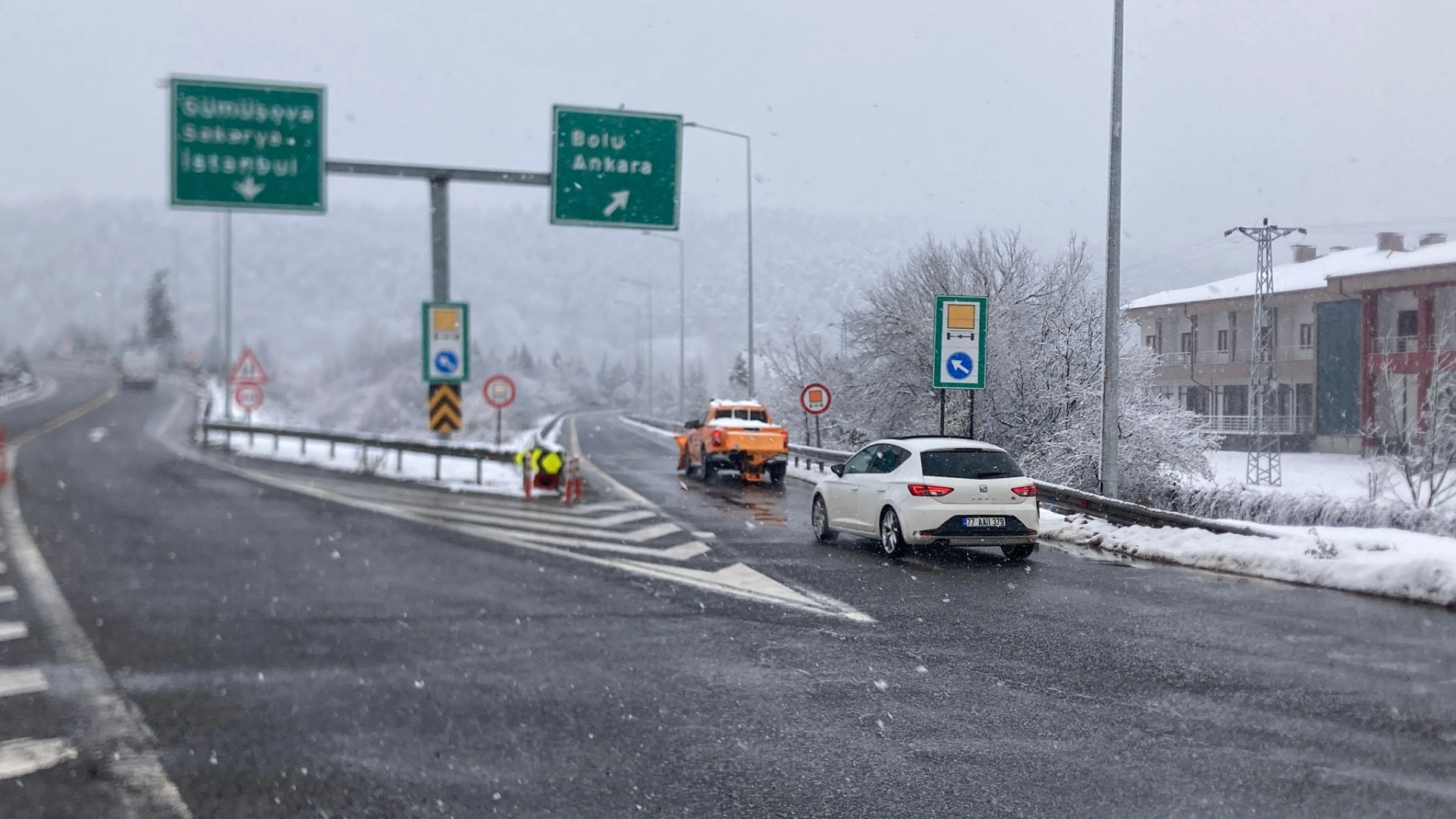Anadolu Otoyolu’nun Bolu Dağı geçişi Ankara yönünde makaslayarak yolu kapatan TIR, ekiplerin çalışması sonrası yoldan kaldırıldı. Yol yeniden trafiğe açıldı. (DHA)