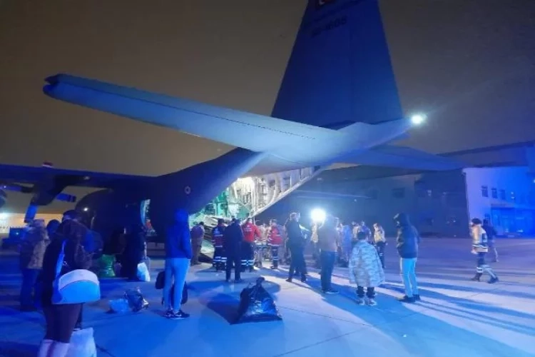 Soner HASIRCIOĞLU/İSTANBUL, (DHA)- DEPREMDE yaralanan 30 kişi, Adana'dan hareket eden 222. Filo'ya ait C130 askeri kargo uçağı ile İstanbul'a getirildi. Apronda görevli astsubay uçaktan indikten sonra üşüdüğünü fark ettiği depremzede çocuğa montunu verdi. Kahramanmaraş merkezli 7.7 ve 7.6 büyüklüğündeki depremlerin ardından, deprem bölgesindeki yaralıların İstanbul'a nakli sürüyor. Adana'dan hareket eden, içerisinde 30 yaralı ve 18 refakatçının bulunduğu 222. Filo'ya ait C130 askeri kargo uçağı, saat 03.00 sıralarında İstanbul Atatürk Havalimanı Askeri Apronu'na indi.