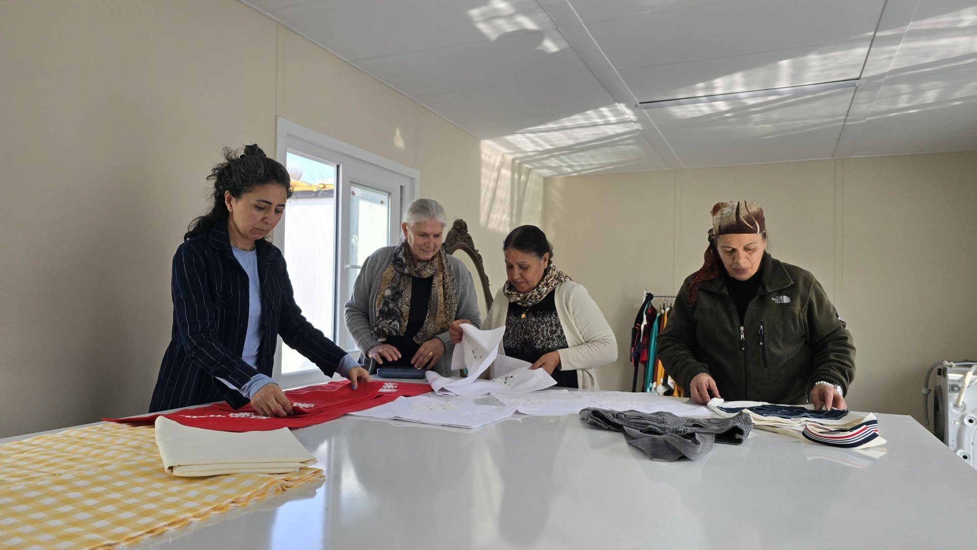Alican GÜMÜŞ/HATAY, (DHA)-HATAY'ın Defne ilçesinde 6 Şubat depreminin ardından kente gelen gönüllü eğitmenlerden dikiş-nakış öğrenen 15 kadın, dernek kurup, hayırseverlerin desteğiyle atölye açtı.Kahramanmaraş merkezli 6 Şubat 2023 depremlerinin en çok yıkıma neden olduğu kente, yaraların sarılması için depremden 5 ay sonra İstanbul'dan bir grup kadın, gönüllü dikiş-nakış eğitmeni olarak geldi. Burada depremzede kadınların kalkınması için kurslar açan eğitmenler, 15 kadına meslek öğretti. Gönüllülerin katkısıyla Defne Kibele Kadın Üretim Derneği'ni kuran kadınlara hayırseverler de destek vererek, prefabrik ev ve malzeme sağladı. 2 yıldır çalışmalarına prefabrik atölyede devam eden kadınlar, ürettikleri giysileri satarak para kazanıp, evlerini geçindirir hale geldi.‘HEM MESLEK ÖĞRENDİK HEM SOSYALLEŞTİK’Kursiyerlerden Gülizar Işık Çay (46) "Depremden sonra çadırlarda yaşam mücadelesi verirken İstanbul'dan gelen eğitmenler sayesinde hem meslek öğrendik hem de sosyalleştik. Hocalarımız bu süreçte bize psikolojik destek de verdi. Hayırseverlerin de desteğiyle şu an konteyner atölyede çalışmalarımıza devam ediyoruz. Çalışmalarımız başarılı olsun diye de ismini Hitit mitolojisindeki bereketle ilişkilendirilen ana tanrıçanın ismi olan Kibele'yi verdik" dedi. Dernek üyesi Semire Akın (52) da "Gönüllü hocalardan öğrendiğimiz beceri sayesinde eşofmanlar, takım elbiseler gibi çoğu kıyafeti üretiyoruz. Şu an bayram kıyafetlerine ağırlık verdik. Eksiklerimiz var ama her geçen gün geliştiriyoruz" diye konuştu.