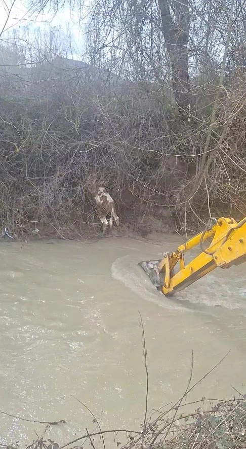 Hızır İlyas YILDIRIM/MUDURNU (Bolu), (DHA)- BOLU’nun Mudurnu ilçesinde dereye düşen 6 aylık buzağı, köylüler tarafından kurtarıldı.
