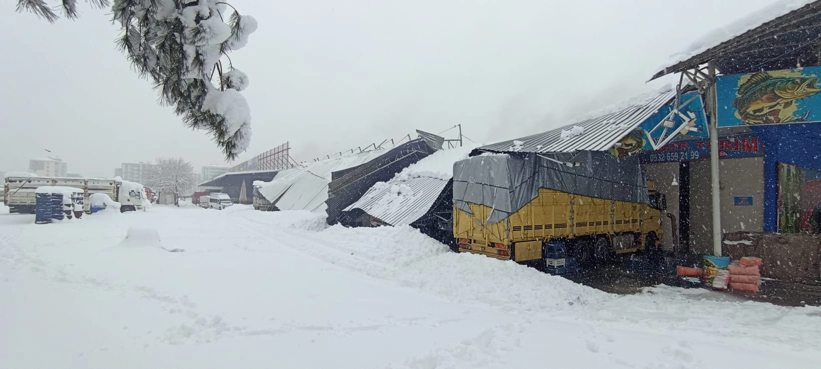 Diyarbakır'ın Bağlar ilçesinde, Yeni Hal’de bazı iş yerlerinin çatısı, üzerlerindeki karın ağırlığına dayanamayarak çöktü. Çatıların altındaki 13 araçta hasar meydana geldi.