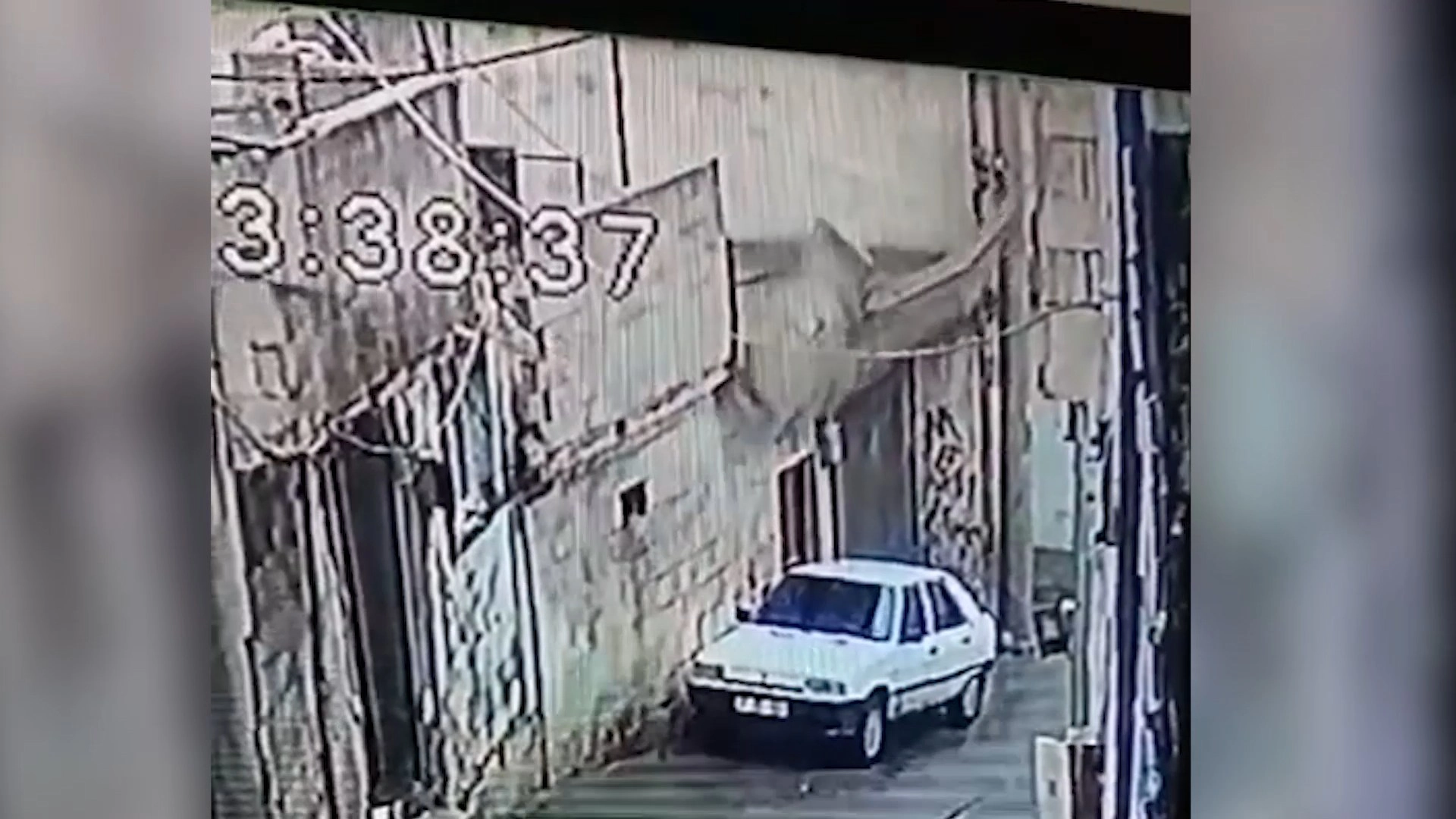 Ali LEYLAK/ŞANLIURFA, (DHA)- ŞANLIURFA’da bir evin damını çevreleyen duvar, park halindeki otomobilin üzerine devrildi. Güvenlik kamerasına yansıyan olayda otomobilde hasar oluştu.