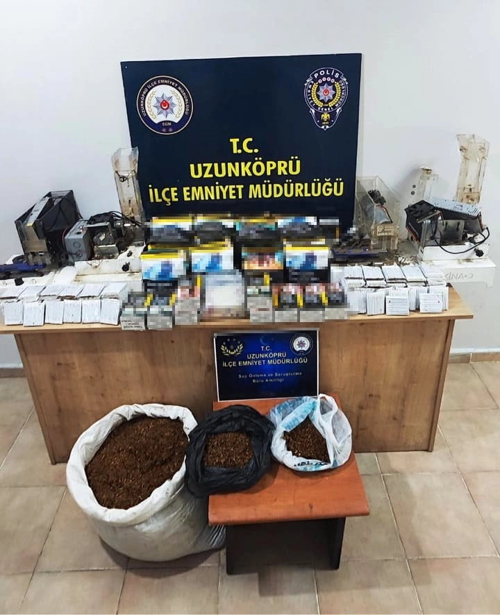 Uzunköprü İlçe Emniyet Müdürlüğü Suç Önleme ve Soruşturma Büro Amirliği ekipleri, tütün doldurulmuş makaron ve kaçak sigara satışının önlenmesine yönelik yaptığı çalışmada H.H.’nin evi ve aracında arama yaptı. Aramada, 2 bin 140’ı doldurulmuş 2 bin 800’ü boş toplam 4 bin 940 makaron, 14 kilo 980 gram kaçak tütün, 500 şeffaf poşet ve 2 sigara doldurma makinesi ele geçirildi. H.H. ve G.H. hakkında ‘5607 sayılı kanuna muhalefet’ suçundan adli işlem başlatıldı. (DHA)