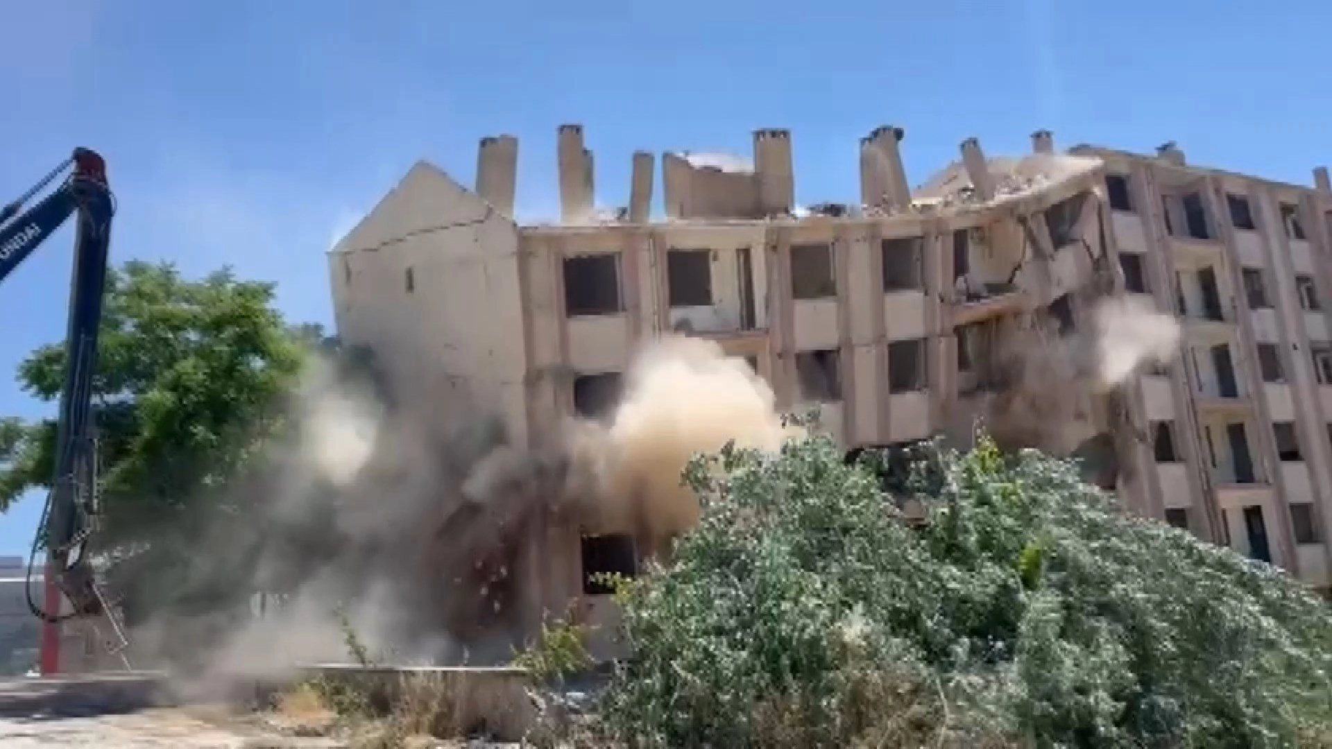 Tekin YALÇINKAYA/ELAZIĞ, (DHA)- ELAZIĞ'da 6 Şubat depremlerinde ağır hasar gören 5 katlı apartman, iş makinesiyle kontrollü olarak yıkıldı. Kahramanmaraş merkezli 6 Şubat 2023 depremlerinde ağır hasar alan Abdullahpaşa Mahallesi'ndeki 5 katlı bir bina, iş makinasıyla kontrollü şekilde yıkıldı. Yıkım çalışmaları sırasında güvenlik önlemleri alınırken, o anlar çevredekiler tarafından cep telefonu kamerasıyla kaydedildi. (DHA)