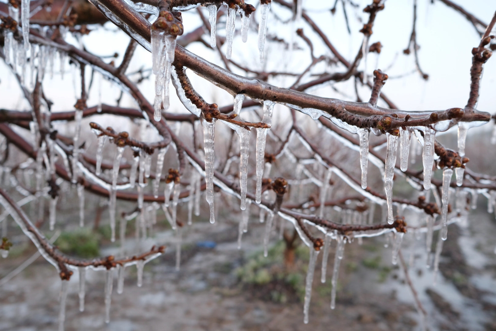 Hacı Baba LALE/YAHYALI, (KAYSERİ), (DHA)- KAYSERİ'nin Yahyalı ilçesinde elma üreticisi, kuyu suyunu püskürttüğü ağaçlarında buz tabakası oluşturarak zirai dona karşı tedbir aldı. Soğuk havanın etkisiyle suyun buza dönüştürülüp, çiçek gözünün ısısını artırmayı hedefleyen 'Spring' yöntemine ilişkin konuşan üretici Ahmet Sarıçiçek, "Bu uygulama bölgemizde yoğun olarak kullanılıyor" dedi.