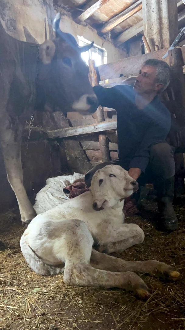 Korkmaz Hocaoğlu, "56 yaşındayım, yıllardır hayvancılık yapıyorum. İlk defa böyle bir olay gördük. Buzağının 2 başı, 2 kulağı ve 4 gözü var. Şu anda sağlık durumu iyi. Annesini emmesinde de herhangi bir sıkıntı yok" dedi. (DHA)