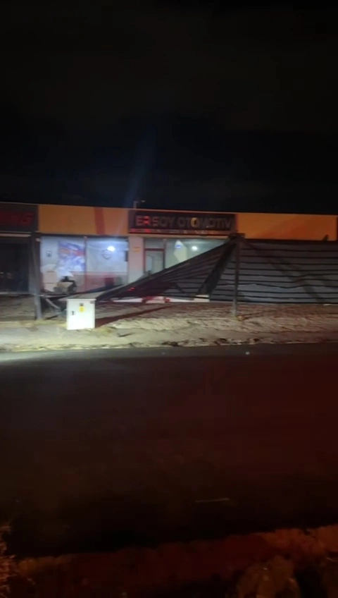 Ali GÖKDAL/ KOZAN(Adana), (DHA)- ADANA'nın Kozan ilçesinde etkili olan fırtına nedeniyle bir iş yerinin surdurması söküldü.
