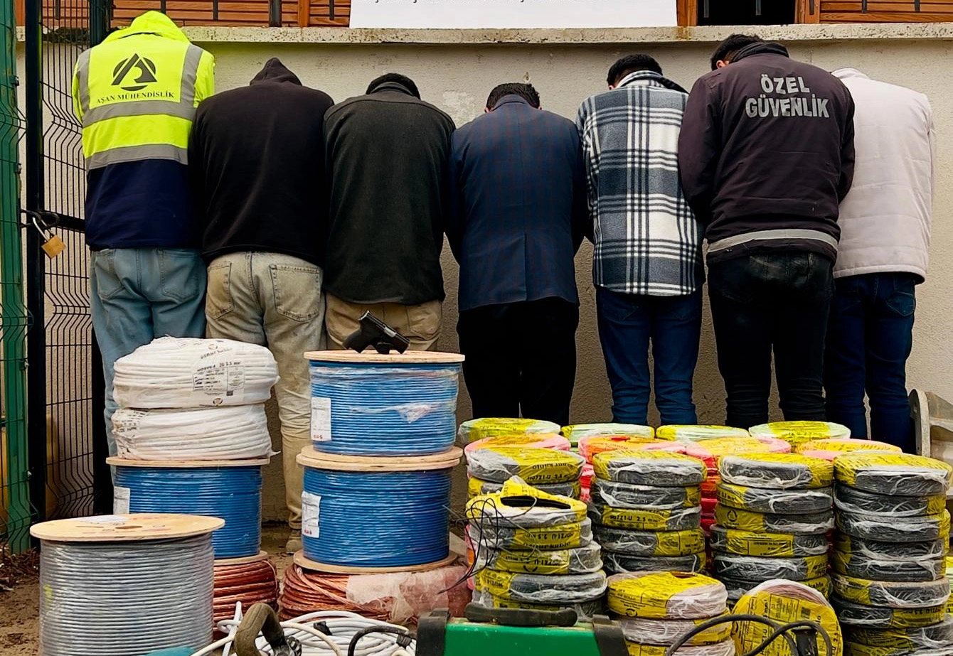 Kadir ÇELİK/NURDAĞI, (Gaziantep), (DHA)-GAZİANTEP'in Nurdağı ilçesindeki bir inşaat şantiyesinden 1 milyon TL değerinde kablo ve çeşitli malzemeler çalan 7 şüpheliden 6'sı tutuklandı. Nurdağı İlçe Emniyet Müdürlüğü ekipleri, Yavuzselim Mahallesi'ndeki bir inşaat şantiyesinden çalınan 1 milyon TL değerindeki kablo ve çeşitli malzemeler için çalışma başlattı. Ekipler, belirlenen 7 şüpheliyi Gaziantep ve Şanlıurfa'da düzenlediği operasyonla yakaladı. Şüphelilerin adreslerindeki aramalarda; 1 ruhsatsız tabanca ile çalıntı elektrik kabloları ele geçirildi. Gözaltına alınıp, emniyetteki işlemlerinin ardından adliyeye sevk edilen şüphelilerden İ.Y., N.K., D.Y., İ.K., İ. K. ve A.S. tutuklandı, M.S. adli kontrol şartıyla serbest bırakıldı. (DHA)