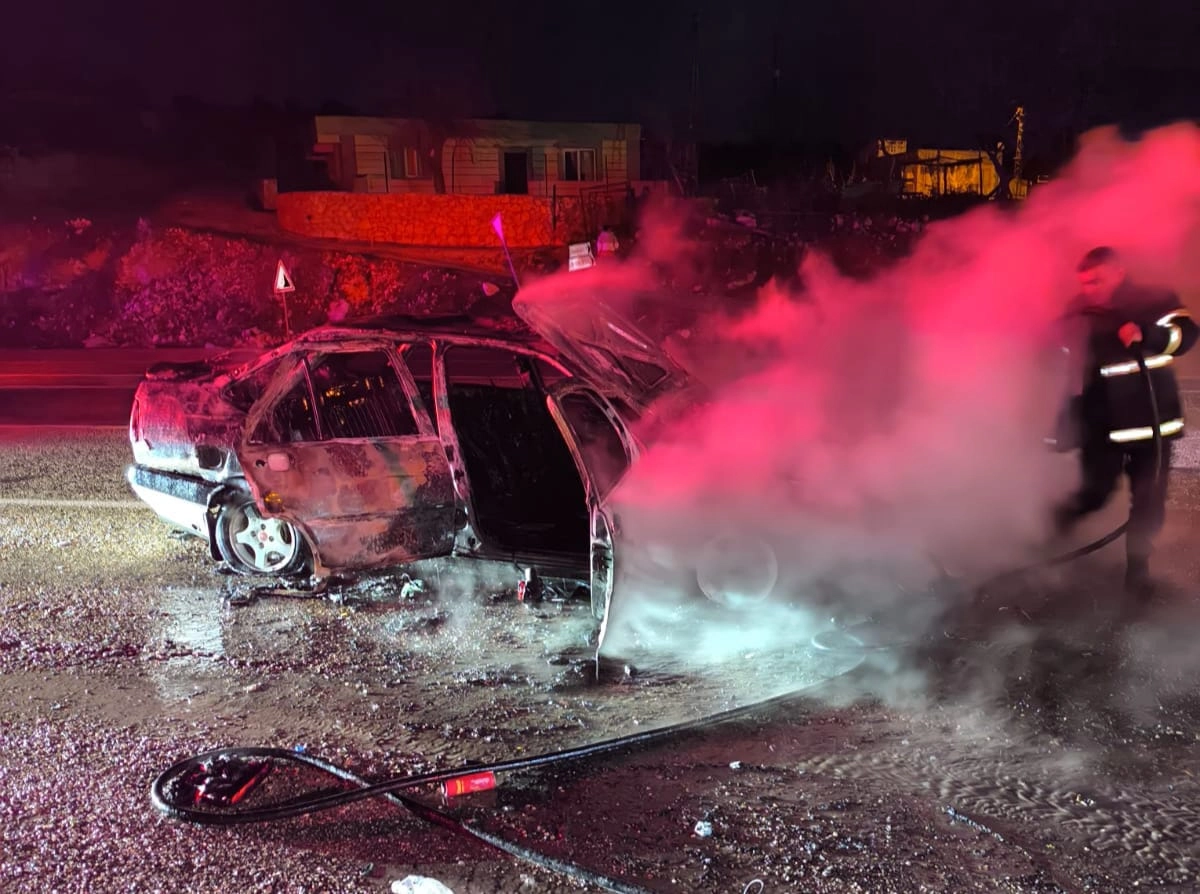 Otomobilin kullanılamaz hale geldiği yangınını çıkış nedeninin belirlenmesi için çalışma başlatıldı. FOTOĞRAFLI