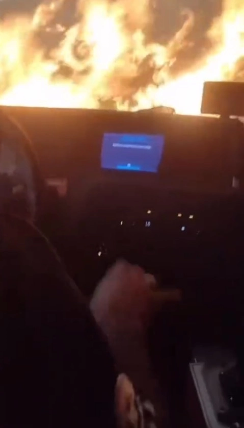 İTFAİYE ARACI ALEVLERİN ARASINDA KALDIHatay'da dün çıkıp, 3 mahallede etkili olan orman yangınında itfaiye aracı, alevlerin arasında kaldı. Mesai arkadaşlarından telsizle yardım isteyen itfaiye personeli, araçtaki başka bir personel tarafından cep telefonuyla görüntülendi. Dualar ederek alevlerin arasından geçen ekip bir süre sonra güvenli alana ulaştı. Orman Bölge Müdürlüğü personeli ile yoğun mesai sürdüren itfaiye ekipleri, alevlere müdahale ediyor. (DHA)