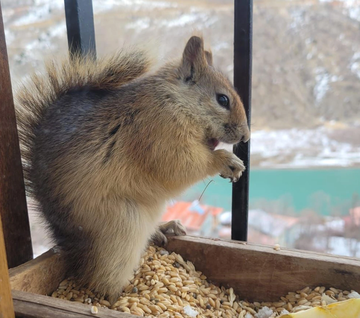 Muzaffer KOŞAN/KEMALİYE (Erzincan), (DHA)- ERZİNCAN’ın Kemaliye ilçesinde ağır geçen kış şartları, yaban hayvanlarını da zor durumda bıraktı. Gençağa Mahallesi’nde oturan Mustafa Ayhan (64), her gün evinin camına gelen sincabı besleyerek onunla özel bir bağ kurdu.