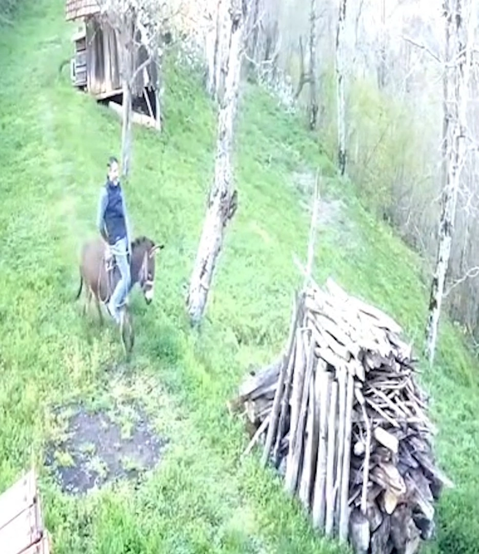 Ahmet BAYRAK/AKKUŞ (Ordu), (DHA)- ORDU'nun Akkuş ilçesinde Murat Aydın, huysuzlanan eşekten düştü. O anlar güvenlik kamerasına yansıdı.
