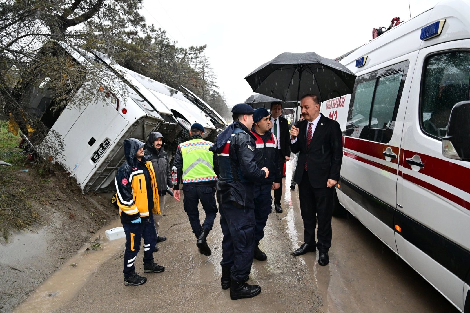 Kaza yerinde incelemelerde bulunan Isparta Valisi Abdullah Erin, "Öğle saatlerinde Isparta- Burdur kara yolunda, aşırı yağış nedeniyle kayganlaşan yolda Afyonkarahisar ilimize ait cezaevi ring aracının yan yatması sonucu 3 jandarmamız hafif şekilde yaralanmıştır. Araçta bulunan diğer personel ve mahkumların durumu iyidir. Yaralı jandarma personelimize acil şifalar diliyor, kazadan etkilenen tüm görevlilerimize ve nakledilen mahkum ve hükümlülere geçmiş olsun dileklerimi iletiyorum" dedi. (DHA)