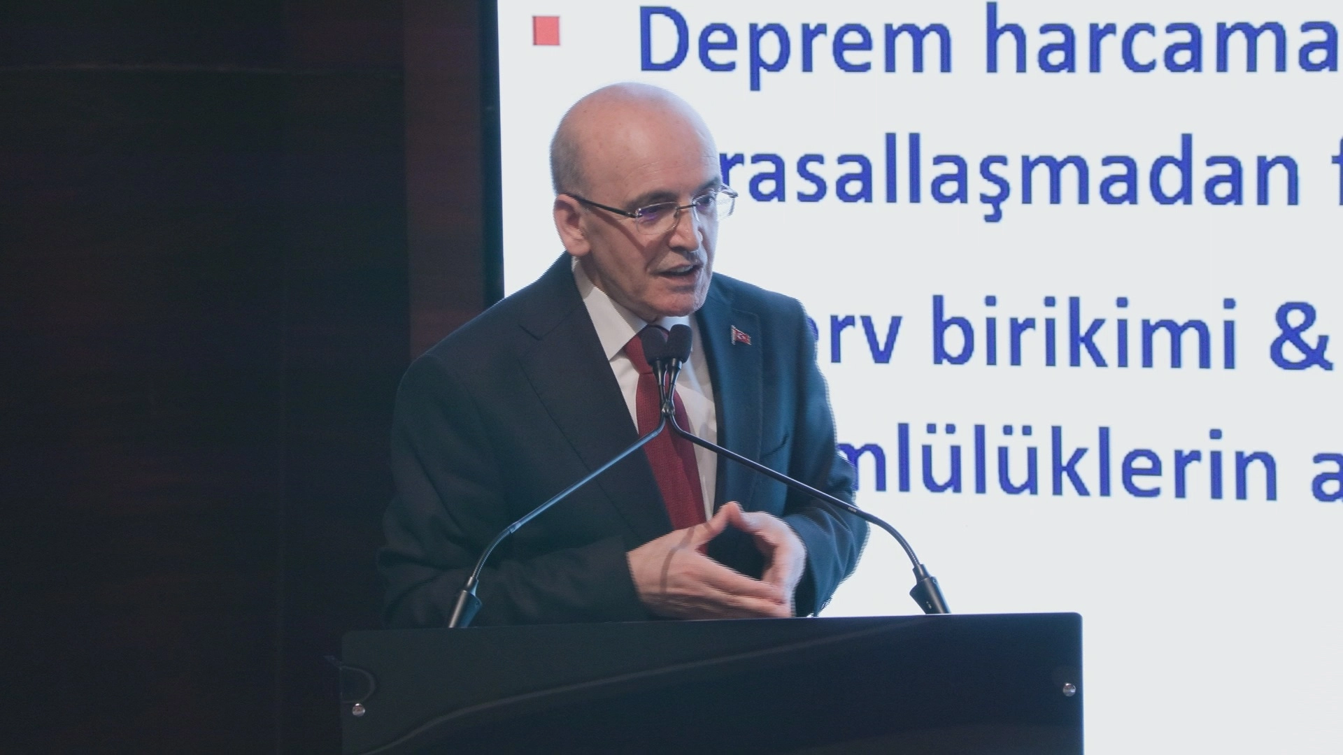 Bakan Şimşek, "Küresel koşullar kısa vadede lehimize. Finansal koşullar, ticaret ortaklarındaki büyüme, emtia fiyatları. Küresel yapısal kırılganlıklara karşı stratejik fırsatlar görüyoruz. Siz tehdit görüyorsunuz, biz fırsat görüyoruz. Sizleri bu fırsatlara hazırlamak için sizlerle birlikte çalışmaya hazırız, kapımız açık. Sizinle birlikte bunu başaracağız. Program sonuç veriyor. Finansal istikrar pekişti. Öngörülebilirlik ve güven artıyor. Dezenflasyonla birliktelik devam edecek, finansman maliyetleri düşecek. Siz istemeseniz de düşecek. Finansmana erişim artacak, artırıyoruz. Özetle, Cumhurbaşkanımızın liderliğinde ve onun tabii ki önceliklerini burada vurgulamak istiyorum. Türkiye üretim, ihracat ve büyümede sıçrama yapmaya devam edecek. Çünkü Cumhurbaşkanımız bizden ne istiyor? Diyor ki, 'Ben yatırım istiyorum, istihdam istiyorum, üretim istiyorum, ihracat istiyorum'. İşin özü şu; kötümser olmayın. Çünkü kötümserliğin size bir faydası yok. Bakın her gün 'yandık, bitti, öldük' derseniz dünya da bunu kayda alır. Not alır, bankacılar not alır. Nasıl birlikte iyileştiririz, sorunları birlikte nasıl çözeriz, ülkemizi nasıl daha ileriye taşırız, birlikte çalışalım" dedi.