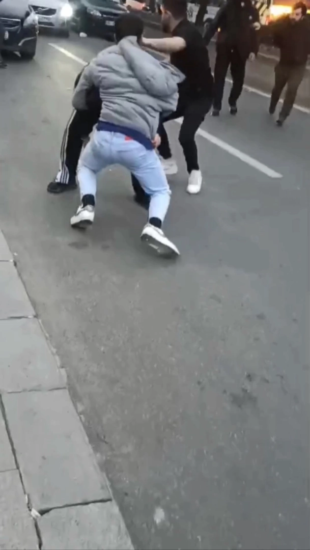 Baran AKKAYA-Emin YEŞİL/İSTANBUL,(DHA)-BAYRAMPAŞA’da caddede henüz bilinmeyen bir nedenle 4 kişi arasında kavga çıktı. Kavga edenlerden biri yanında bulunan silahla çevreye rastgele ateş etmeye başladı. Bölgede devriye gezen ekipler, silah sesi üzerine kavgaya müdahale etti. Silahlı tekmeli yumruklu kavga anları cep telefonu kamerasına yansıdı.Olay akşam saatlerinde Yenidoğan Mahallesi Abdi İpekçi Caddesinde meydana geldi. Caddede henüz bilinmeyen bir nedenle 4 kişi arasında kavga çıktı. Tekme ve yumrukların kullanıldığı kavgada, 1 kişi yanında bulunan silahı çıkararak çevreye rastgele ateş etmeye başladı. Çıkan kavgada olay yerinden geçen devriye ekipler taraflara müdahale etti. Polis kavgaya karışan 4 kişiyi ekip aracına bindirerek polis merkezine götürdü. Yaşanan tekmeli yumruklu silahlı kavga anları cep telefonu kamerasına yansıdı.(DHA)
