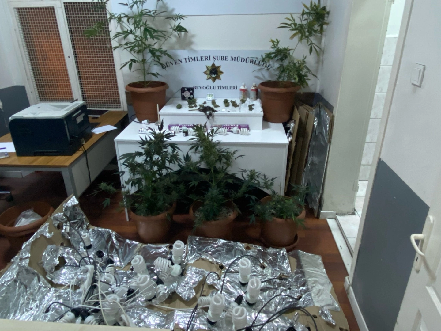 İhsan DÖRTKARDEŞ/İSTANBUL, (DHA)- BEYOĞLU'nda kiraladıkları daireye sera kurup uyuşturucu imalatı yapıldığı tespit edilen 2 şüpheli yakalandı.İstanbul emniyeti Güven Timleri Şube Müdürlüğü'ne bağlı ekipler, uyuşturucu satıcılarının yakalanmasına yönelik çalışma başlattı. Ekipler, yaptıkları saha çalışmasında 'Çekdar' ve 'Serkan' isimli şüphelilerin Sütlüce Mahallesi Zorbayır Sokak'ta kiraladıkları bodrum katta uyuşturucu üretimi yaptığı bilgisine ulaştı. 28 Mart'ta tespit edilen daireyi takibe alan ekipler, şüphelilerin eve girdiğini tespit ederek operasyon düzenledi. Yapılan operasyonda Çekdar K. (28) ve Serkan D. (31) gözaltına alınırken 5 büyük saksı içinde yetiştirilen Hint keneviri, 8 kenevir tohumu, 82,6 gram kurutulmuş mariuhana, 752 gram uyuşturucu madde yetiştiriciliğinde kullanılan sıvı gübre ele geçirildi. (DHA)