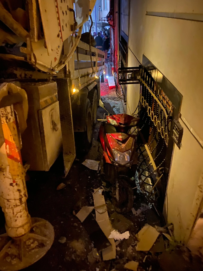 Emre KURT / İSTANBUL, (DHA)- Eyüpsultan'da şoförün kontrolünü kaybettiği vinç ara sokakta park halinde bulunan araçlara ve binalara çarparak durabildi. Kazada 4 araç ve 2 binanın dış cephesi zarar gördü.