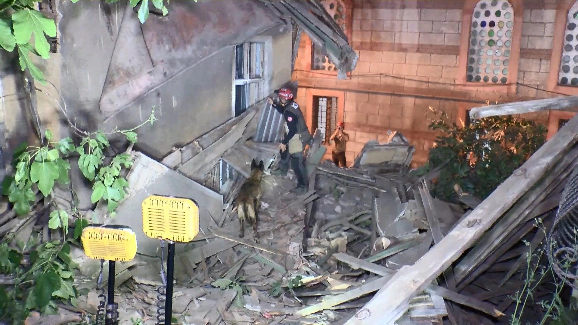 Soner HASIRCIOĞLU - Ahmet YEŞİLMEN/İSTANBUL, (DHA) - FATİH'te, 2 katlı metruk binada kısmi çökme meydana geldi. Ekipler, enkaz altında kalan kişilerin olma ihtimaline karşın arama yaptı.Olay, saat 22.30 sıralarında Ayvansaray Mahallesi Yatağan Hamamı Sokak'ta meydana geldi. İki katlı metruk binada henüz bilinmeyen bir nedenle kısmi çökme meydana geldi. Sesleri duyan çevredeki vatandaşların ihbarı üzerine olay yerine AFAD, UMKE, itfaiye, polis ve sağlık ekipleri sevk edildi. Bölgede güvenlik önlemi alan ekipler, enkaz altında kalan kişiler olma ihtimaline karşın özel eğitimli köpekler ile beraber yıkıntılar arasında bir süre arama yaptı. Metruk binanın, 23 Nisan'da Marmara Denizi'nde meydana gelen 6.2 büyüklüğündeki depremde sağa doğru devrildiği öğrenildi. Fatih Belediyesi zabıta ekipleri, yapılacak incelemenin ardından binanın yıkılacağını belirtti.'EVDE OTURURKEN BİR SES GELDİ'Mahalle sakini Samet Polat, "Normalde binamız metruk bina olduğu için zabıtamız önlemini almıştı. Geçen depremde sağa doğru devrildi. Bugün de ben evde otururken bir ses geldi. Koşarak gelip bakınca bina sağa doğru devrik olduğu için yıkılmış. Buradakiler, 'abi bina yıkılmadan bir iki kişi içeri girdi ama çıktı mı çıkmadı mı bilmiyoruz' dedi. Ben de o zaman 112 acil ihbar hattını arayarak tüm yetkililere haber verdim. İçeride şu anda arama yapılıyor" dedi. (DHA)