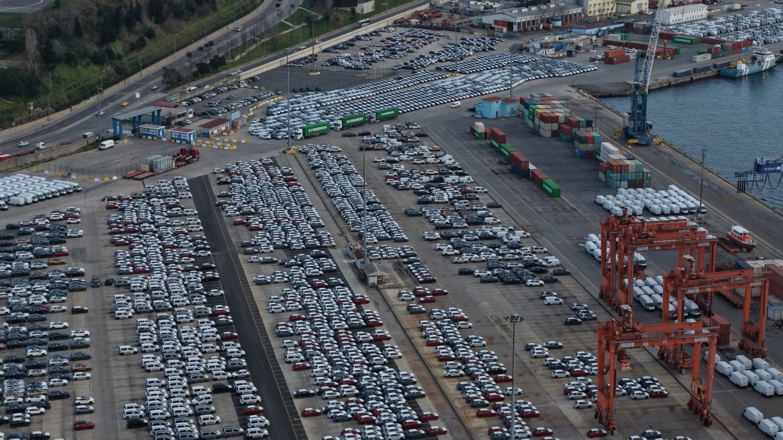 İstanbul'un önemli lojistik merkezlerinden Haydarpaşa Limanı yurtdışından gelen sıfır otomobillerle doldu. Gümrük işlemleri gerçekleşene kadar liman sahasında bekletilen araçların, süreçlerin ardından ülke genelindeki bayi ve galerilere gönderilerek satışa sunulacakları belirtildi. Limandaki araç yoğunluğu havadan dronla görüntülendi. (DHA)