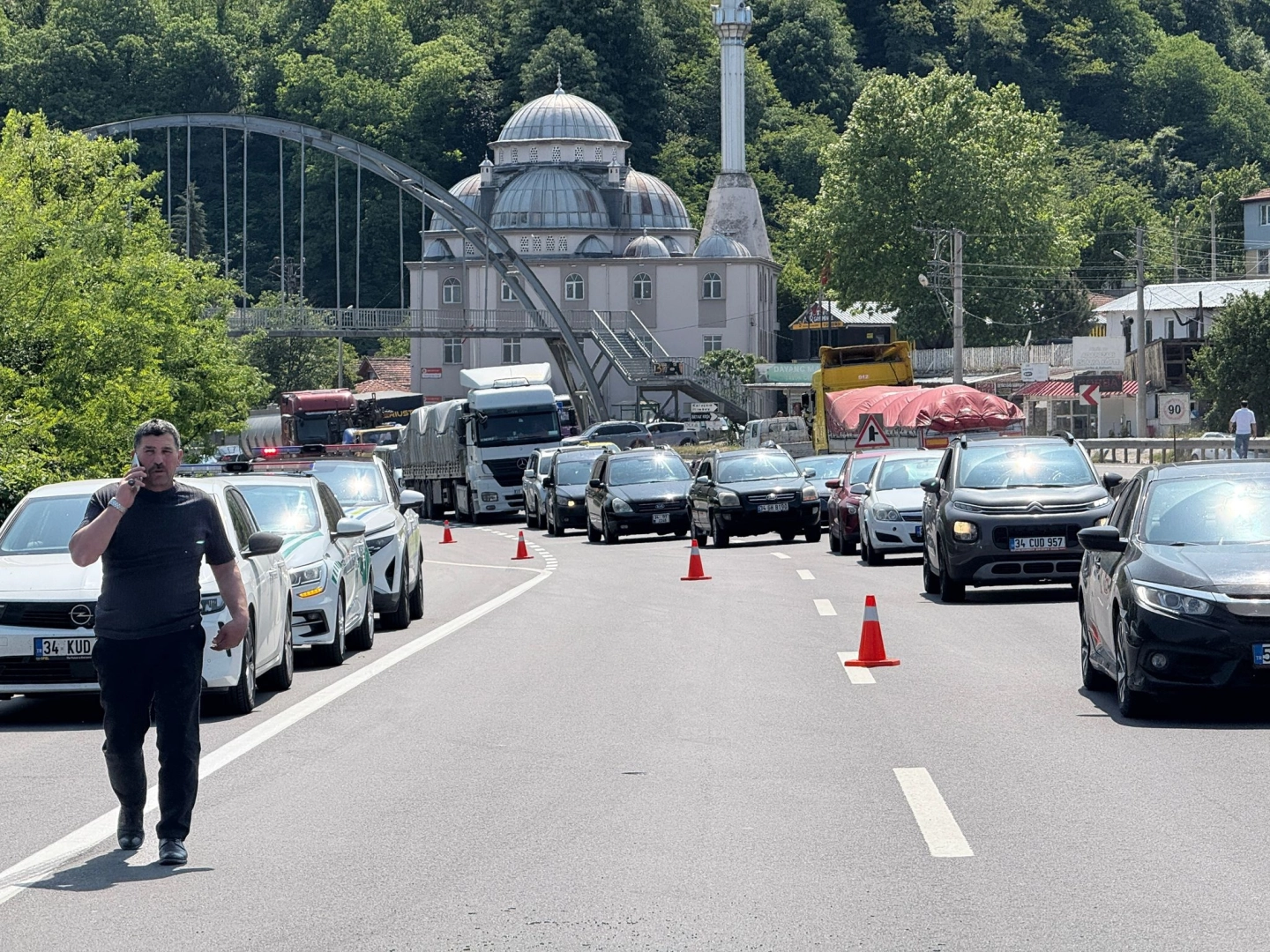 Ahmet ERDEM/GEYVE (Sakarya) (DHA)- SAKARYA'nın Geyve ilçesinde kamyonetin cipe arkadan çarptığı kazada 2 kişi yaralandı. Kaza nedeniyle yolda uzun araç kuyrukları oluştu.Kaza, saat 15.00 sıralarında D-650 kara yolunun Karaçam Mahallesi mevkisinde meydana geldi. Sakarya yönüne giden N.C. (54) idaresindeki 54 ACU 772 plakalı kamyonet, aynı yöne giden T.T. (38) kontrolündeki 48 DG 652 plakalı cipe arkadan çarptı. Kazada 2 sürücü de yaralandı. Çevredekilerin ihbarı üzerine kaza yerine itfaiye, sağlık ve polis ekipleri sevk edildi. Kamyonette sıkışan sürücü N.C., itfaiye ekiplerinin müdahalesiyle çıkarıldı. Yaralılar ilk müdahalelerinin ardından ambulansla hastaneye kaldırıldı.Sakarya yönünde uzun araç kuyrukları oluşan yolda ulaşım, araçların kaldırılmasının ardından yaklaşık yarım saat sonra yeniden normale döndü.Kazaya ilişkin inceleme başlatıldı. (DHA)