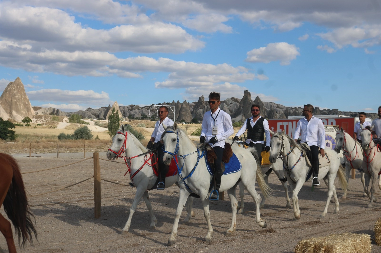Ahmet KORKMAZER/ NEVŞEHİR, (DHA)- NEVŞEHİR’in Göreme beldesinde, ‘Kapadokya At ve Atçılık Kültürü Festivali’ başladı. Türkiye’nin önemli turizm merkezlerinden Kapadokya bölgesinin at kültürü ve atçılık geleneğinin yaşatılması, tanıtılması ve gelecek nesillere aktarılması amacıyla ‘Kapadokya At ve Atçılık Kültürü Festivali’ düzenlendi. Nevşehir Valiliği himayesinde, Göreme Belediyesi ev sahipliğinde Kılıçlar Vadisi girişinde oluşturulan alandaki etkinliğe, Vali Ali Fidan, Göreme Belediye Başkanı Ömer Eren ve vatandaşlar katıldı. Festival, Jandarma At ve Köpek Eğitim Komutanlığında yetiştirilen atların yanı sıra farklı illerden atlarıyla katılan binicilerin geçidi ile başladı. Etkinlikte konuşan Vali Fidan, “Kapadokya’nın kalbinde peribacalarının hemen gölgesinde, doğanın tarih ile eşsiz uyumunu barındıran bu coğrafyada ‘At ve Atçılık Kültürü Festivali’nin birincisini düzenliyoruz. Kapadokya, sadece doğal güzellikleriyle, vadileriyle, peribacalarıyla, yeraltı şehirleriyle değil, aynı zamanda eşsiz kültür zenginliğiyle, mimarisiyle, yaşam kültürü ve gastronomi ile de ülkemizin ve dünyanın en önemli coğrafyalarından birisi. Bu bölge aynı zamanda atçılığın mayalandığı yüzyıllardır atçılık geleneğinin yaşatıldığı güzide coğrafyalardan birisi. Güçlü ve dayanıklı atlarıyla da bilinen ‘güzel atlar diyarı’ diye adlandırılan bir coğrafya” dedi. (DHA)