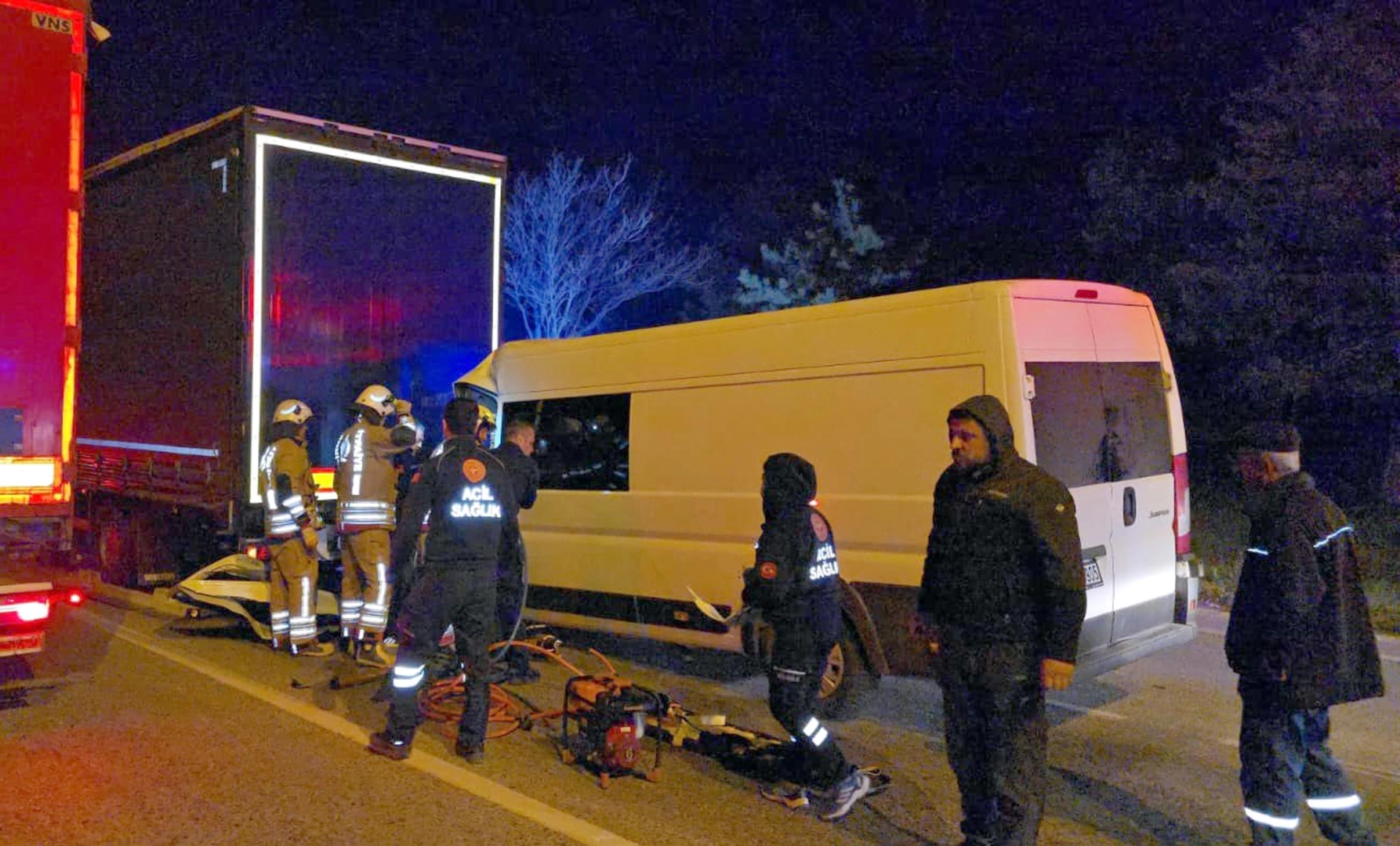 Olgay GÜLER/EDİRNE, (DHA)- EDİRNE'de kırmızı ışıkta bekleyen TIR'a arkadan çarpan minibüsün sürücüsü Muhammet Şen (46), öldü, yanındaki P.O.A. ise yaralandı.