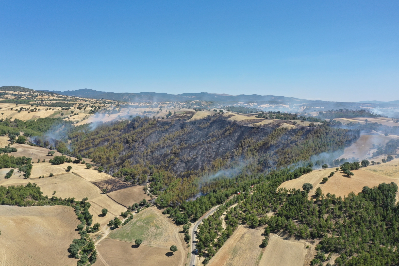 BAZI EVLER TAHLİYE EDİLDİKütahya’nın Gediz ilçesine bağlı Yenikent beldesi yakınlarında çıkan orman yangınıyla ilgili söndürme çalışmalarına 4 helikopter, 25 arazöz, 15 itfaiye aracı, 3 dozer ve yaklaşık 150 personel katıldı. Kütahya Valiliği kararıyla Hamzabey Mahallesi’nde ormana yakın olan evlerde oturanlar tahliye edildi. Ekipler, yangının yerleşim alanlarına sıçramaması için söndürme çalışmaları devam ediyor. VALİ IŞIN: YANGIN BİÇERDÖVERDEN ÇIKTIKütahya Valisi Musa Işın, söndürme çalışmalarının devam ettiğini belirterek, “Saat 12.00 civarlarında Gediz’e bağlı Yenikent köyünde biçerdöverden kaynaklanan bir yangın meydana geldi. Rüzgarın da etkisiyle yayılma özelliğini gösterdi. Daha çok buğday tarlalarından başlayan bu yangın hem buğday tarlalarını hem de ormanlık alanları kapsadı. Hamzabey köyüne doğru giden bu yangına arkadaşlarımız müdahalede bulunarak, tedbir alarak köyü yangından kurtardı. Alikahya köyüne sirayet etmemesi için arkadaşlarımız tedbir alıyorlar. İnşallah daha fazla yayılmadan, zarara neden olmadan yangını söndürmüş olacağız” dedi. (DHA)