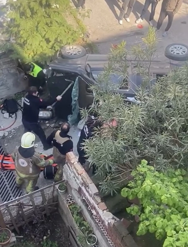 Kaza saat 16.30 sıralarında Yıldırım ilçesi Teferrüç Mahallesi 5’inci Çamlıca Sokak’ta meydana geldi. M.Ö. (77) idaresindeki 51 BG 664 plakalı hafif ticari araç, sürücüsünün direksiyon hakimiyetini kaybetmesiyle kontrolden çıkarak önce bir evin bahçe duvarına çarptı. Savrulan araç, daha sonra merdivenlerden alt yola düşüp, yan yatarak durdu. Hafif yaralanan sürücü ile araçta bulunan C.A. (8) ile V.A. (10) kendi imkanlarıyla araçtan çıkarken, E.A. (34) ise araçta sıkıştı. İhbar üzerine olay yerine polis, itfaiye ve sağlık ekipleri sevk edildi. İtfaiye ekiplerinin ön camı kırarak araçtan çıkardığı E.A., sağlık ekiplerinin ilk müdahalesinin ardından ambulansla kaldırıldığı Bursa Yüksek İhtisas Eğitim ve Araştırma Hastanesi’nde tedaviye alındı. O anlar çevredeki bir vatandaşın cep telefonu kamerasına yansırken, ekipler, kurtarma çalışmasını izleyen kalabalığı da bölgeden uzaklaşmaları için uyardı.