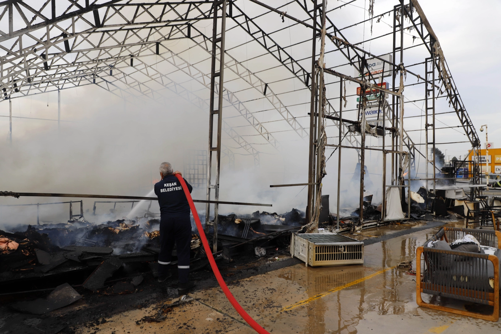 Mobilya satılan çadır alev alev yandı; söndürme çalışmalarına polis, TOMA ile destek verildi/ Ek fotoğraflar