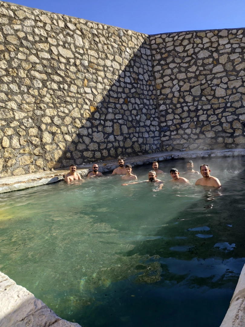 Behçet DALMAZ/VAN, (DHA)- VAN’ın Gürpınar ilçesi Yalınca Mahallesi’ndeki kaplıca havuzu, hava sıcaklığının sıfırın altına düştüğü günlerde de ziyaretçilerini ağırlıyor. Yaklaşık 80 kişiden oluşan off-road ekibi, karla kaplı dağların arasında, 50 derece sıcaklıktaki kaplıca suyunda yüzdü.