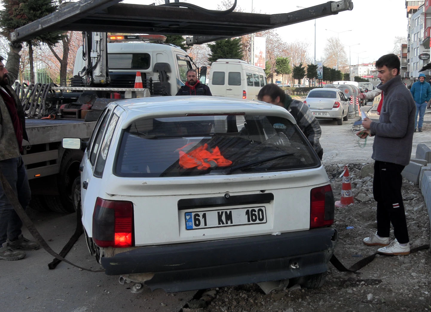 Kaza, saat 15.00 sıralarında Faroz Mahallesi’nde meydana geldi. İ.K.A. (19), ani fren yapan önündeki araca çarpmamak için yönetimindeki 61 KM 160 plakalı otomobilin direksiyonunu kırdı. Bu sırada kontrolün kaybolduğu araç, kaldırım taşına çarptı. Yan yatan aracın sürücüsü ile yanındaki arkadaşı kendi imkanlarıyla yara almadan çıktı.