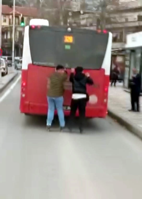 Ömer KOÇ/KAHRAMANMARAŞ, (DHA)- KAHRAMANMARAŞ’ta patenli 2 çocuğun, otobüsün arkasında tutunarak yaptığı yolculuk cep telefonuyla görüntülendi.