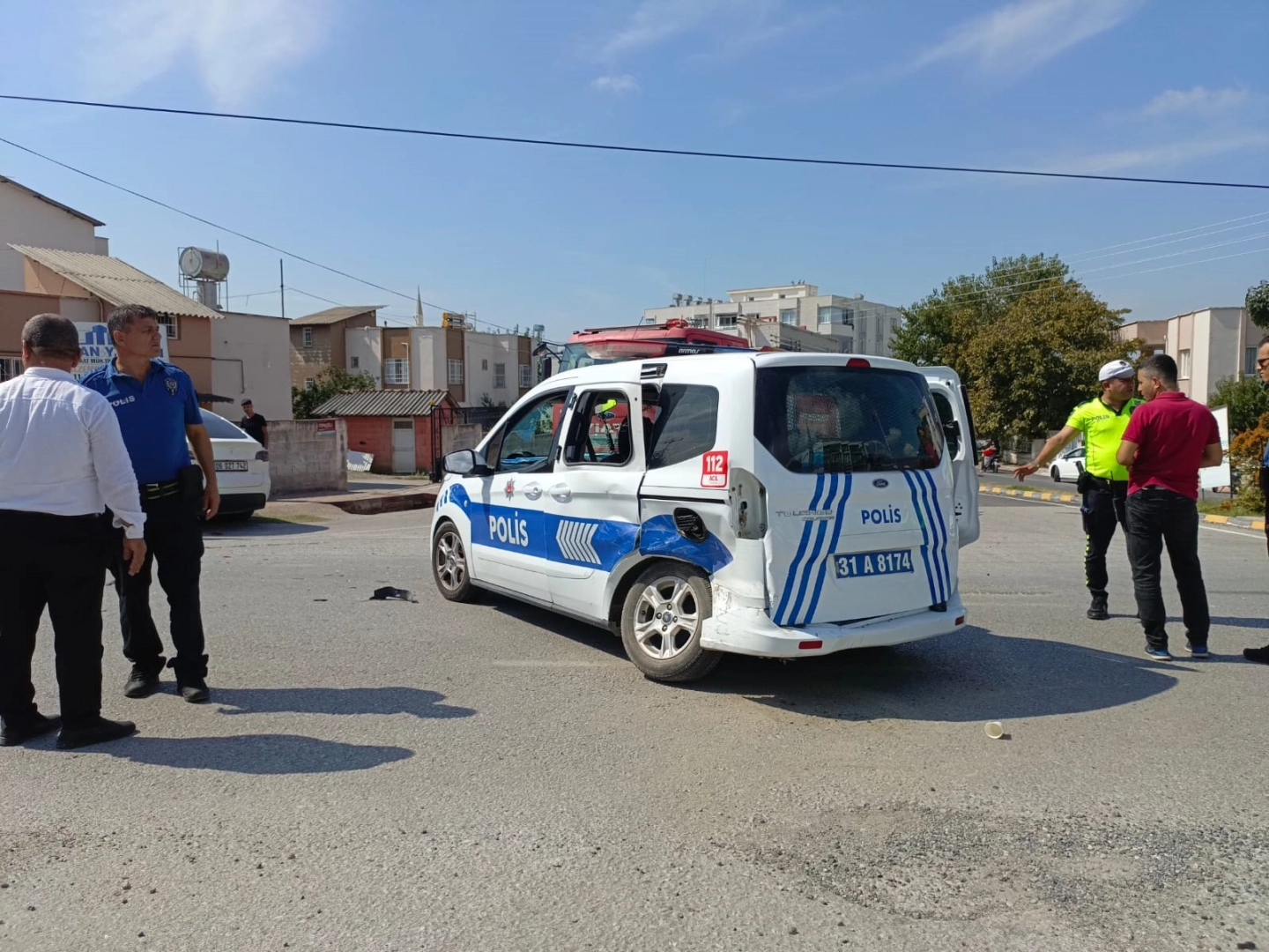 Mehmet SOYER/ERZİN (Hatay), (DHA)- HATAY'da otomobille polis aracının çarpıştığı kazada 3'ü polis memuru 5 kişi yaralandı.Kaza, sabah saatlerinde, Erzin ilçesi Sıtkı Kara Bulvarı Hatsu kavşağında meydana geldi. Erzin ilçesinden Dörtyol’a giden Mehmet Ertaç yönetimindeki 06 DZT 742 plakalı otomobil ile polis aracı çarpıştı. Kazada 3 polis memuru hafif yaralandı. Çevredekilerin ihbarı üzerine bölgeye sağlık ekipleri sevk edildi. Otomobildeki Mehmet Ertaç ve eşi ambulansla Dörtyol Devlet Hastanesi'ne kaldırıldı. Yaralıların sağlık durumunun iyi olduğu belirtilirken, kazayla ilgili soruşturma başlatıldı. (DHA)