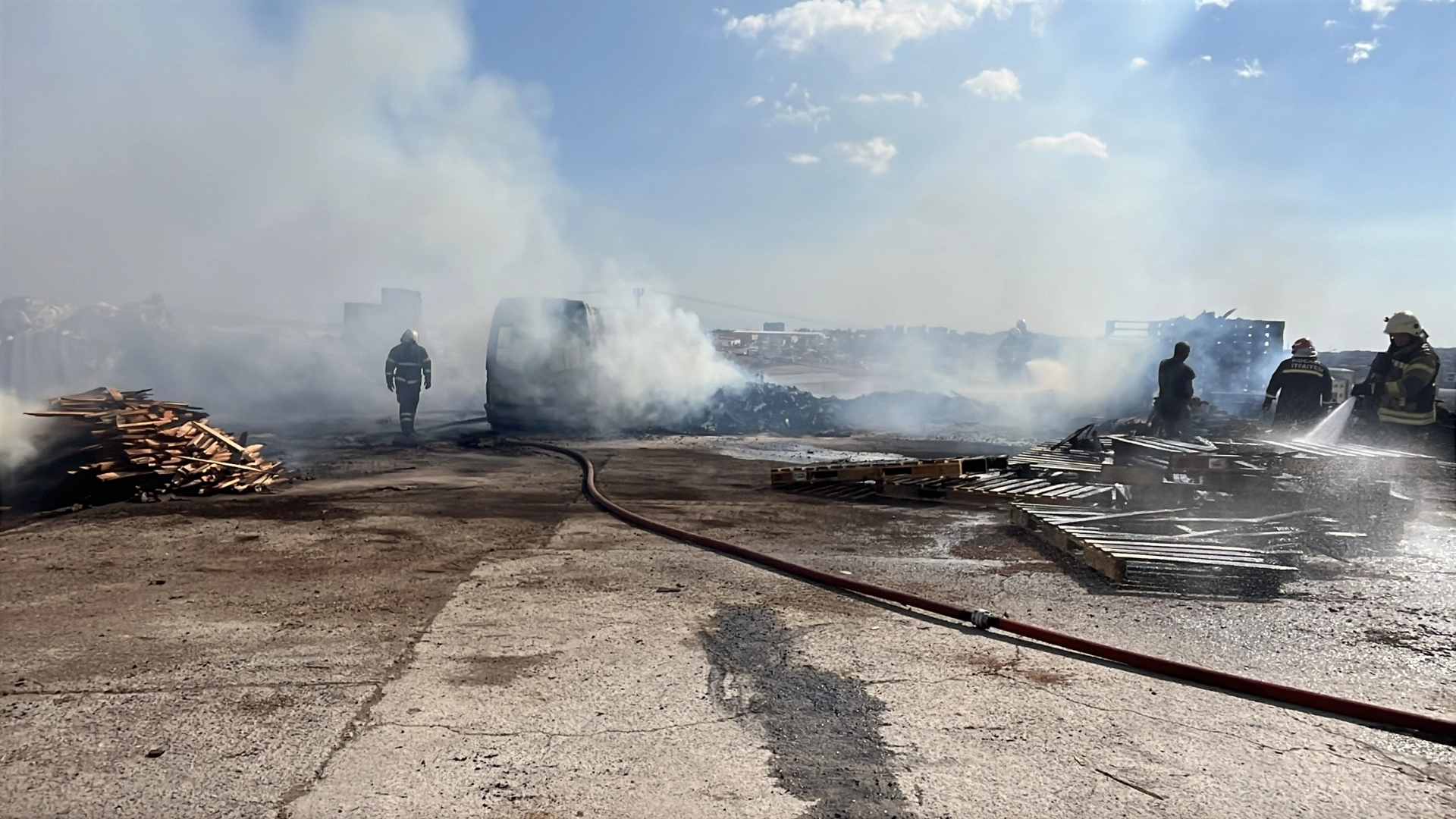 Erol POLAT/GEBZE (Kocaeli), (DHA)- KOCAELİ’nin Gebze ilçesinde palet imalathanesinin açık depolama sahasında çıkan yangında, alevlerin ortasında kalan park halindeki minibüs kullanılamaz hale geldi. Kirazpınar Mahallesi Yeni Bağdat Caddesi’ndeki palet imalathanesinin açık depolama sahasında saat 16.30 sırlarında henüz bilinmeyen nedenle yangın çıktı. Paletlerin bir kısmını saran alevler, depolama sahasında park halinde bulunan minibüse sıçradı. Çevredekilerin, 112 Acil Çağrı Merkezi’ne ihbarı üzerine bölgeye itfaiye, sağlık ve jandarma ekipleri yönlendirildi. Yangın, itfaiyenin yarım saat süren müdahalesi sonucu söndürüldü. Yangında park halindeki minibüs kullanılamaz hale geldi. Jandarma olayla ilgili inceleme başlattı. (DHA)