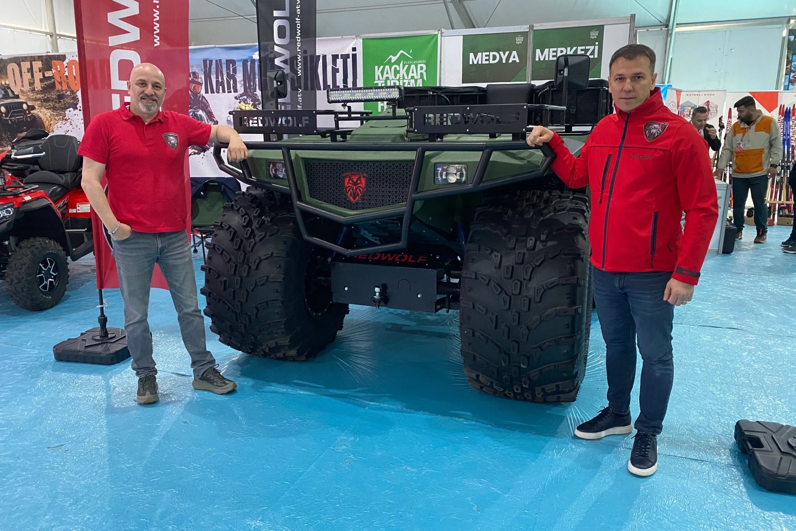 İstanbul’da yaşayan makine mühendisleri Murat Toygar ve Ertan Koşar, 2023 yılında gittikleri Rusya'da yakından görüp, deneyimleme imkanı buldukları dev arazi aracı ATV’yi Türkiye'ye getirmek istedi. İhracatı yasal olarak engellenen ATV’yi ülkeye getiremeyen mühendisler, kolları sıvayarak aynı aracın daha büyüğünü üretmeye karar verdi. 2 mühendis ve 5 tasarımcıdan oluşan ekip, kurdukları atölyede 2 yıl süren yoğun Ar-Ge çalışmasının ardından her türlü zorlu arazi koşulunda gidebilmenin yanında suda da yüzme yeteneğine sahip ATV’yi üretmeyi başardı. Türkiye Motosiklet Federasyonu’nun davetlisi olarak getirildiği Rize'deki Uluslararası Kaçkar Turizm Fuarı’nda görücüye çıkan 'Red Wolf' adlı amfibi tipi araç, yoğun ilgi gördü. Fuarda ziyaretçilerinden tam not alan araç, heybetli yapısıyla da dikkatleri çekti.