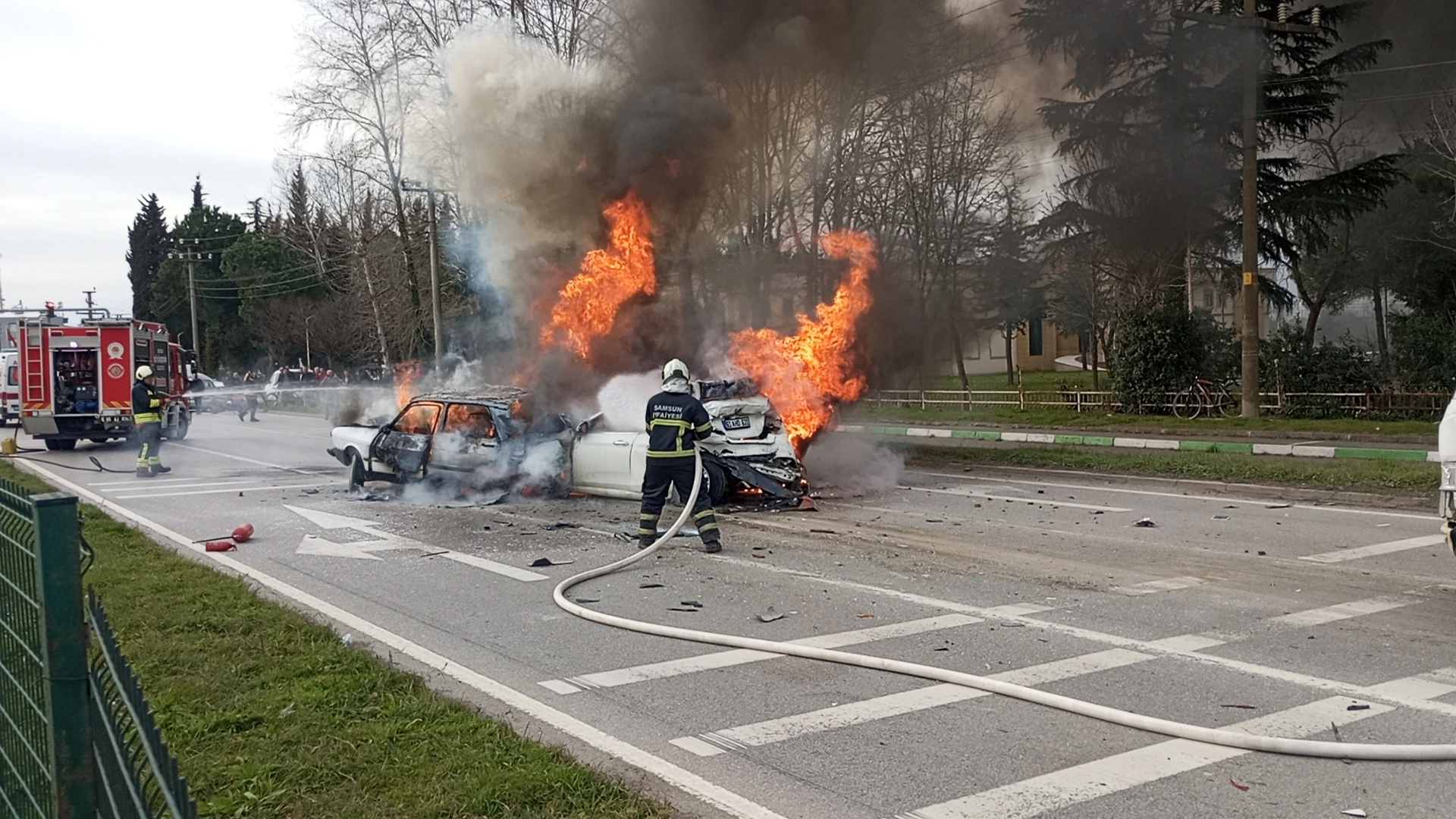Kaza, saat 15.30 sıralarında Çarşamba ilçesi Yeni Samsun Caddesi'nde meydana geldi. Caddede 6 aracın karıştığı zincirleme kaza yaşandı. Çarpışmanın ardından araçların birinde çıkan yangın, 2 araca daha sıçradı. İhbarla olay yerine itfaiye, polis ve sağlık ekipleri sevk edildi. Kazada yaralanan 3 kişi, ambulanslarla hastaneye kaldırıldı. Yangın söndürülürken, 3 araç tamamen kullanılmaz hale geldi.