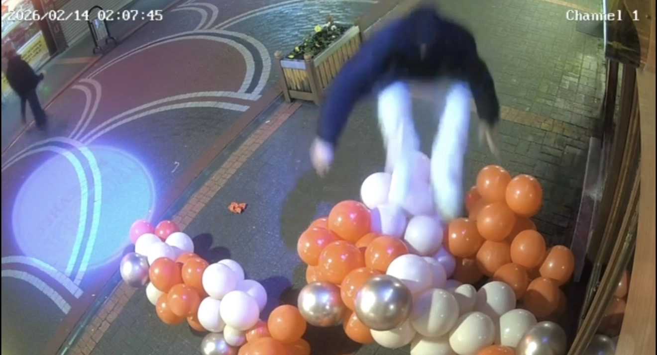 Olay, gece saatlerinde Hükümet Caddesi’nde meydana geldi. Bir kuyumcunun 14 Şubat Sevgililer Günü için iş yerini süslemek amacıyla astığı renkli balonlar, caddeden geçen kişi tarafından sökülerek yere atıldı. Bir tane balon alan şüpheli diğer balonları da üzerinde zıplayarak patlatırken, o anlar iş yerinin güvenlik kamerasına yansıdı.