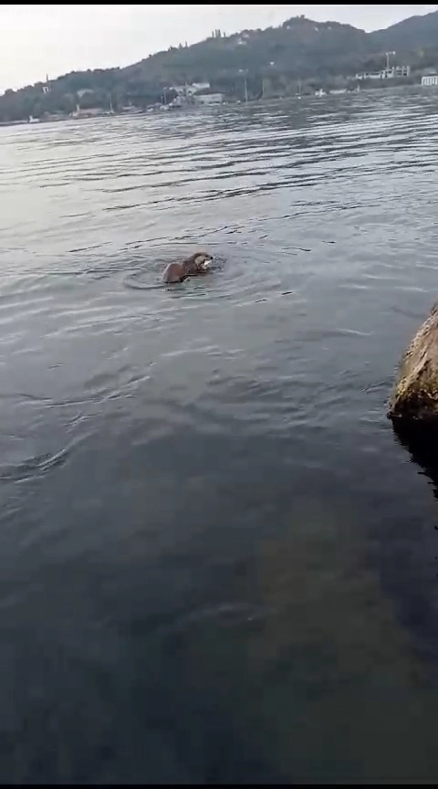 Sinan KABATEPE/ EREĞLİ(Zonguldak), (DHA)- ZONGULDAK’ın Ereğli ilçesinde, balıkçıların yakınlarında bekleyen bir su samuru, oltaya takılan balığı alıp, kaçtı. O anlar çevredekiler tarafından cep telefonu kamerasıyla görüntülendi.