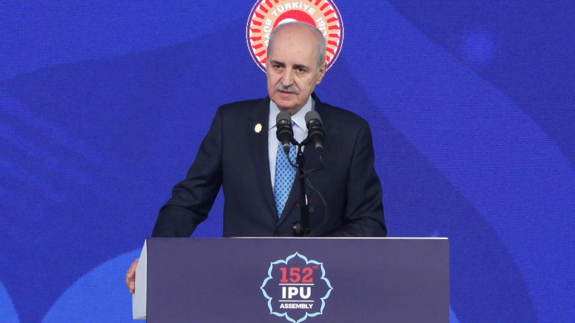 Kurtulmuş, “Küresel vicdanın en temel işlevi, kimden geldiğine bakılmaksızın ihlale ihlal diyebilmek ve ihlali yapanı suçlu olarak insanlık ailesinin önüne çıkarabilmektir. İçinde bulunduğumuz dönemde asıl ihtiyaç duyulan husus, daha çok söz üretmekten ziyade söylenen söz ve konulan kurallara uygun davranabilmektir. Uluslararası toplum kınamayla yetinen, ertelemeyle oyalanan ve ağır krizleri prosedür tartışmalar içerisine hapseden bir anlayıştan süratle kurtulmak ve uluslararası alanda yaşadığımız sorunları dirayetle çözmek mecburiyetindedir. Diplomasi, biliyoruz ki elbette soğukkanlılık ister. Nezaket de uluslararası sistemin ve uluslararası temasın vazgeçilmez unsurlarındandır. Fakat nezaket zulmü görünmez kılan bir örtüye asla dönüştürülmemeli, nezaket perdesi altında zalime zalim diyebilme kudretini kaybetmemeliyiz. Ölçülü konuşmakla etkisiz konuşmak arasında da bir mesafe vardır; sükunetle suskunluk arasında da bir farklılık olduğu gibi. Bu nedenle parlamentolara bu dönemde büyük bir görev düştüğünün altını çizmek isterim. Sözü hem en açık bir şekilde söyleyecek hem de sözlerimizde asla ve asla hakikati gizleyecek, nezaket adı altında hakikati gizleyecek bir davranış içerisinde olmayacağız" şeklinde konuştu.